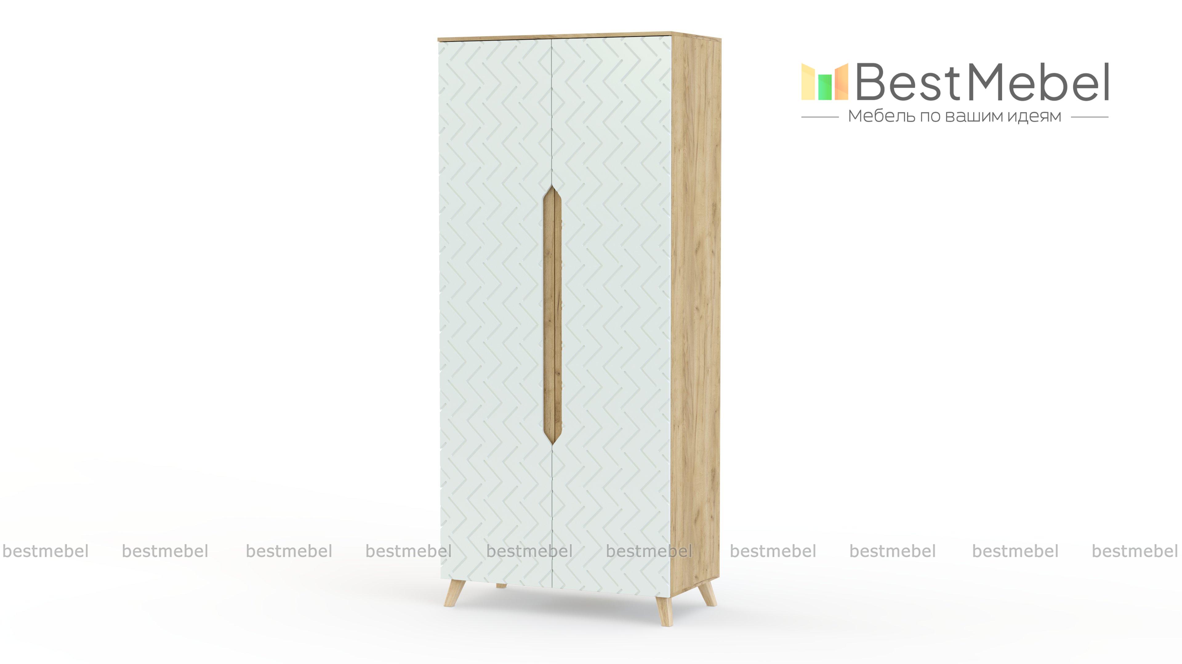 Шкаф распашной Хетти 12 BMS добавит интерьеру выразительности с помощью стильных акцентов. Фасад двухдверного шкафа украшен зигзагообразной фрезеровкой, а в роли ручек выступают эффектные вырезы. Выполненная в нейтральной светлой гамме из долговечных материалов, модель располагается на высоких скошенных опорах в скандинавском стиле. Купить шкаф распашной Хетти 12 BMS для хранения предметов гардероба вы сможете на сайте нашего интернет-магазина.