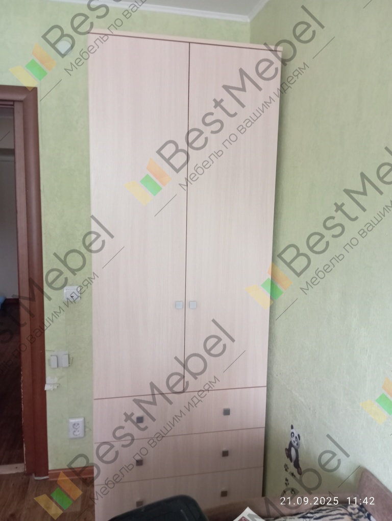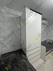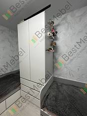 Отличный шкаф! Очень функциональный. Заказывали 80х220. Изготовление и доставка вовремя, сборщик вообще молодец! Приезал на следующий день после доставки, проверил комплект и на брак. Быстро, тихо, аккуратно все собрал. Убрал мусор. Из минусов только доставка, проверяйте доставщиков, у нас неожиданно увеличился километраж от МКАД и цена за подъем, после звонка в компанию все решили. Сам шкаф просто красавчик, лучше чем представляли.                                      |