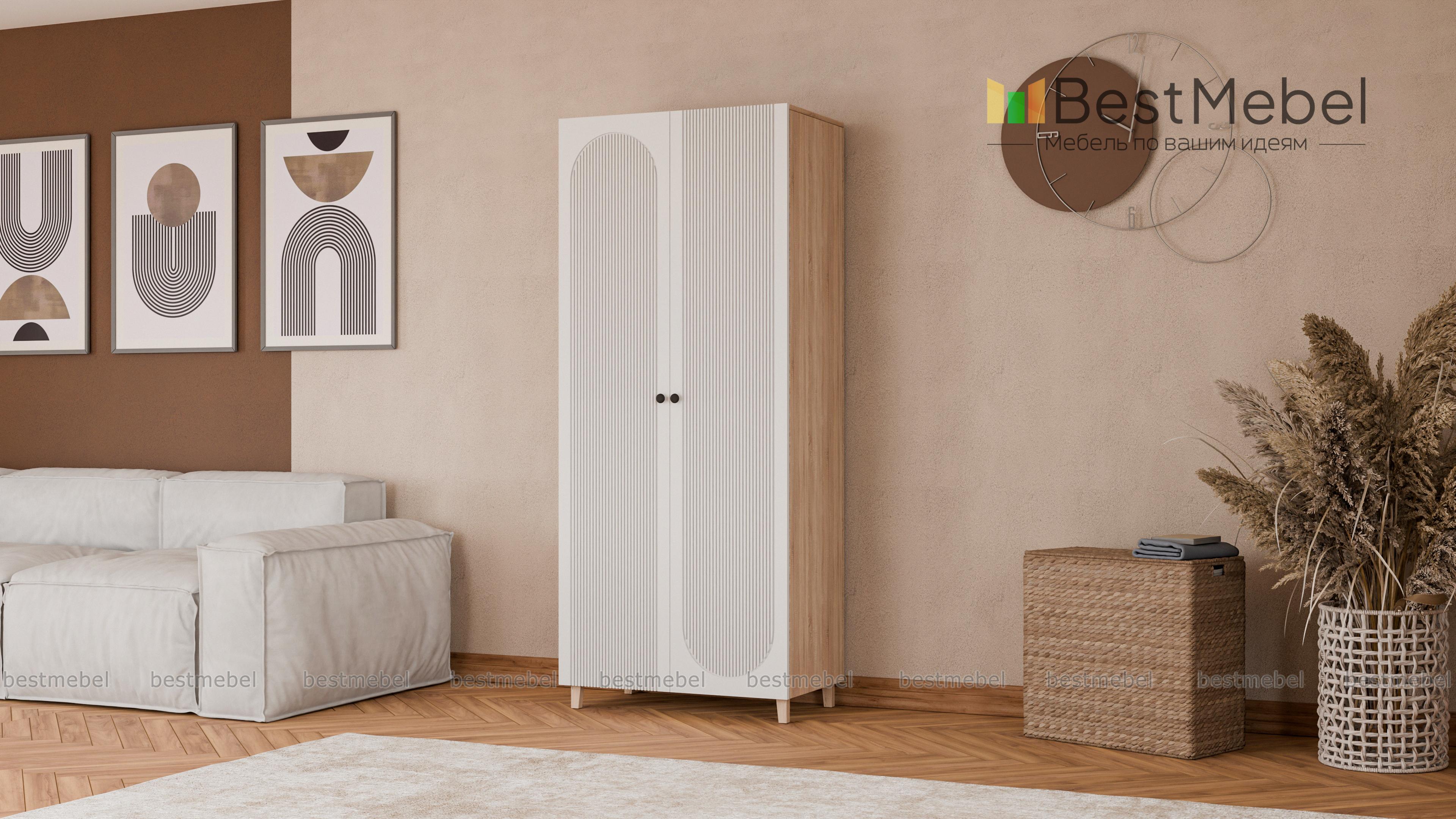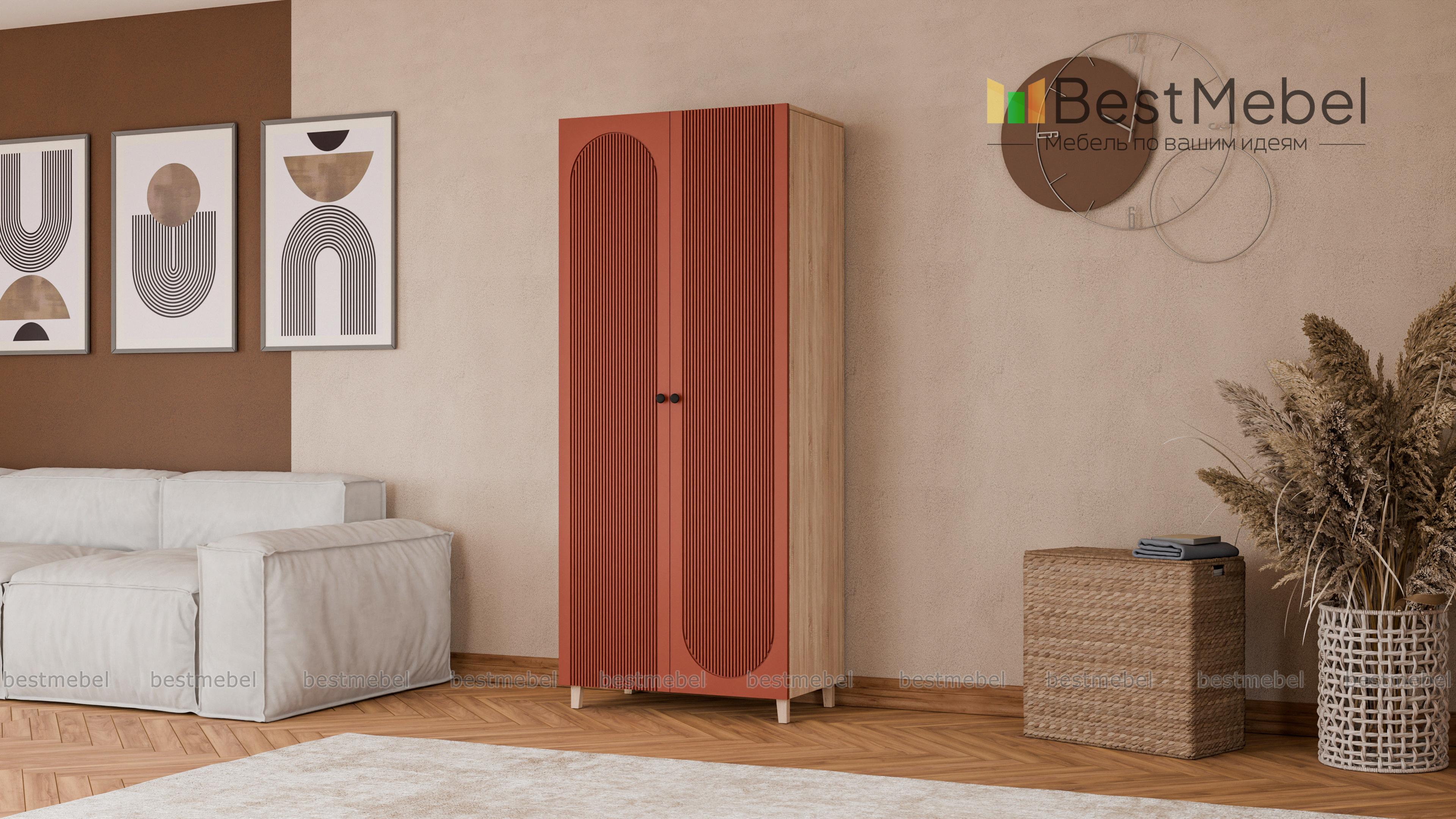 Шкаф распашной Рене 17 BMS в стильном темном дизайне добавит индивидуальности интерьеру. Высокие ножки выполнены в тон корпусу с древесным рисунком, фасад украшает оригинальный рельеф. Двухдверное распашное отделение со штангой и полками оптимально подходит для хранения базового гардероба в небольших спальнях, детских и прихожих. Купить шкаф распашной Рене 17 BMS вы сможете в нашем интернет-магазине, самостоятельно подобрав размеры и гармонирующую с интерьером цветовую гамму.