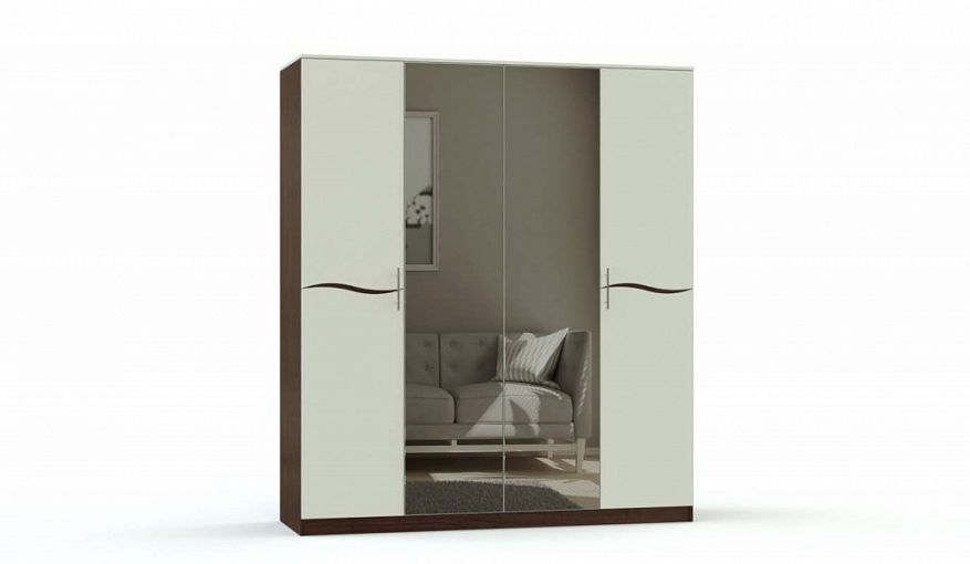 Шкаф распашной Валенсия BMS, выполненный в сочетании темных древесных тонов и белого, отличается элегантным современным дизайном. Боковые створки четырехдверной модели декорированы изящными вырезами, а центральные - полностью зеркальные, визуально расширяют границы комнаты. Просторные внутренние отделения, оборудованные бельевыми полками и штангой, станут залогом отличной вместительности. Купить шкаф распашной Валенсия BMS для меблировки спальни вы сможете в нашем интернет-магазине.