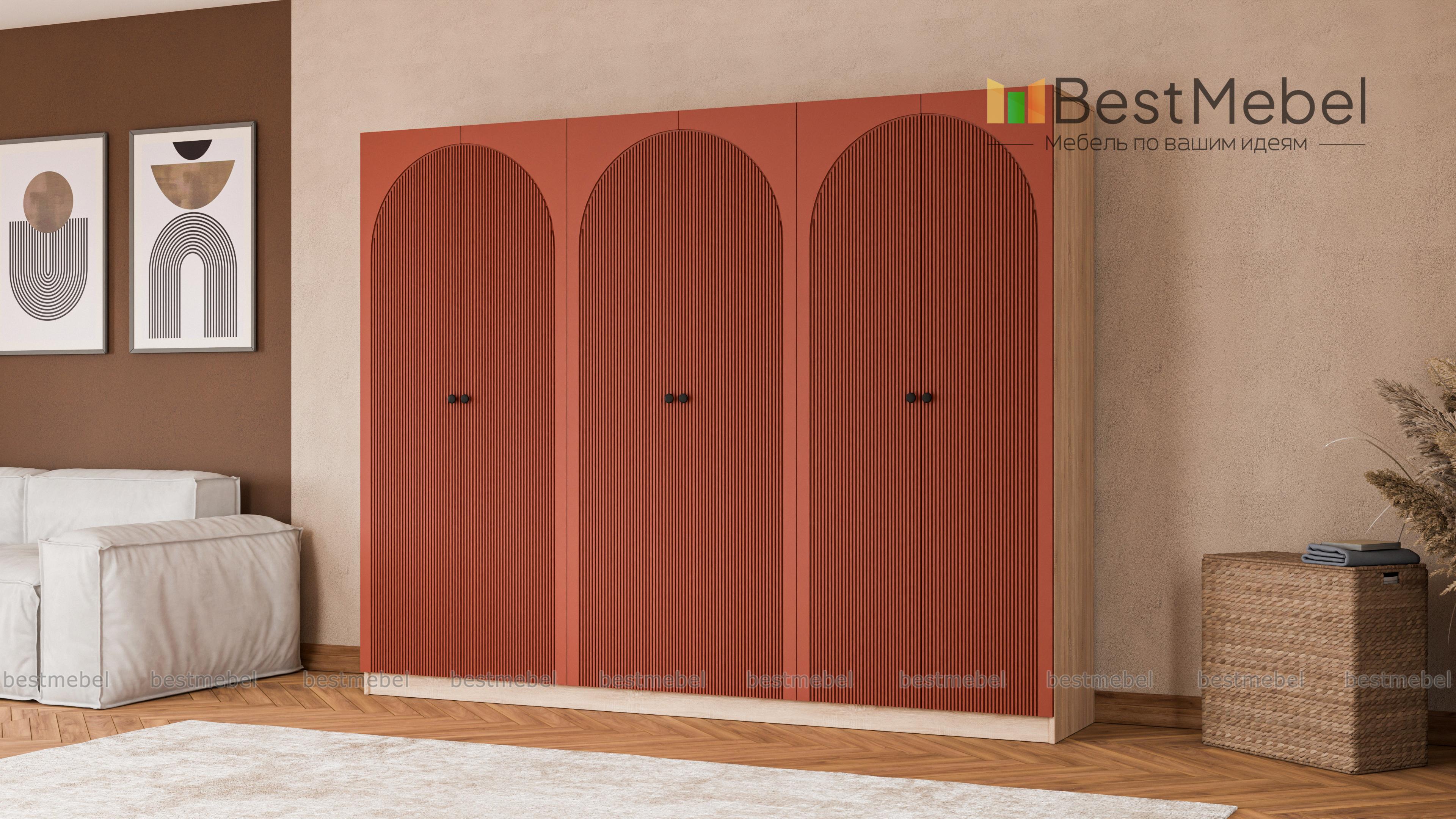 Шкаф распашной Вивьен 16 BMS — это удобный и вместительный гардероб с современным дизайном. Шестидверная конструкция включает в себя все необходимое для хранения одежды, обуви, аксессуаров и постельных принадлежностей. Фасады, изготовленные из МДФ с рифленым рисунком, стильно выглядят, просты в уходе и долговечны, корпус — ЛДСП высокого качества. Купить шкаф распашной Вивьен 16 BMS с выбором размеров, цвета и компоновки вы сможете недорого в нашем интернет-магазине.