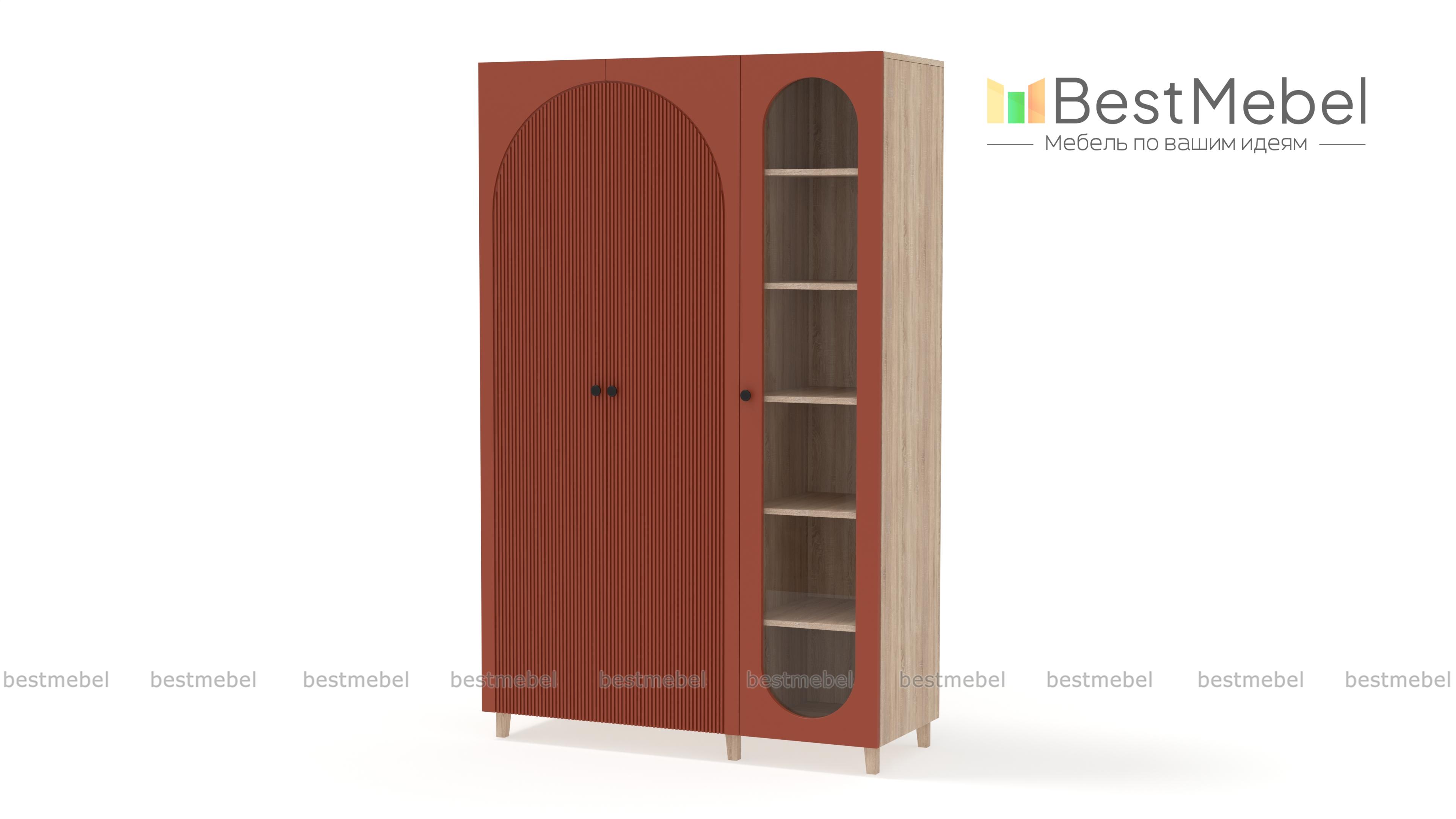 Шкаф распашной Вивьен 21 BMS объединил платяное отделение с двумя дверцами и однодверную витрину. Многофункциональная модель для детской или гостиной позволяет разместить не только одежду, но и книги, посуду, разнообразные мелочи и декор. Каркас и ножки в древесных тонах дополнены износостойкими фасадами из МДФ с фигурными вырезами и стильной фрезеровкой. Купить шкаф распашной Вивьен 21 BMS в любом удобном размере и оттенке из каталога приглашаем в наш интернет-магазин.