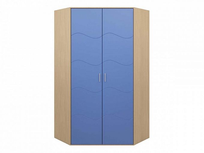 Шкаф угловой НМ 009.02 BMS разработан для любителей повышенной функциональности и неординарного дизайна в современном стиле. Интересное сочетание цветов позволит дополнить интерьер Вашей комнаты. Изюминкой компактного шкафа являются две дверки, украшенные волнообразными резными линиями и прозрачными ручками. Внутреннее пространство укомплектовано четырьмя широкими вместительными полками для различных вещей. Для максимального комфорта модель оборудована двумя выездными штангами на разных уровнях.