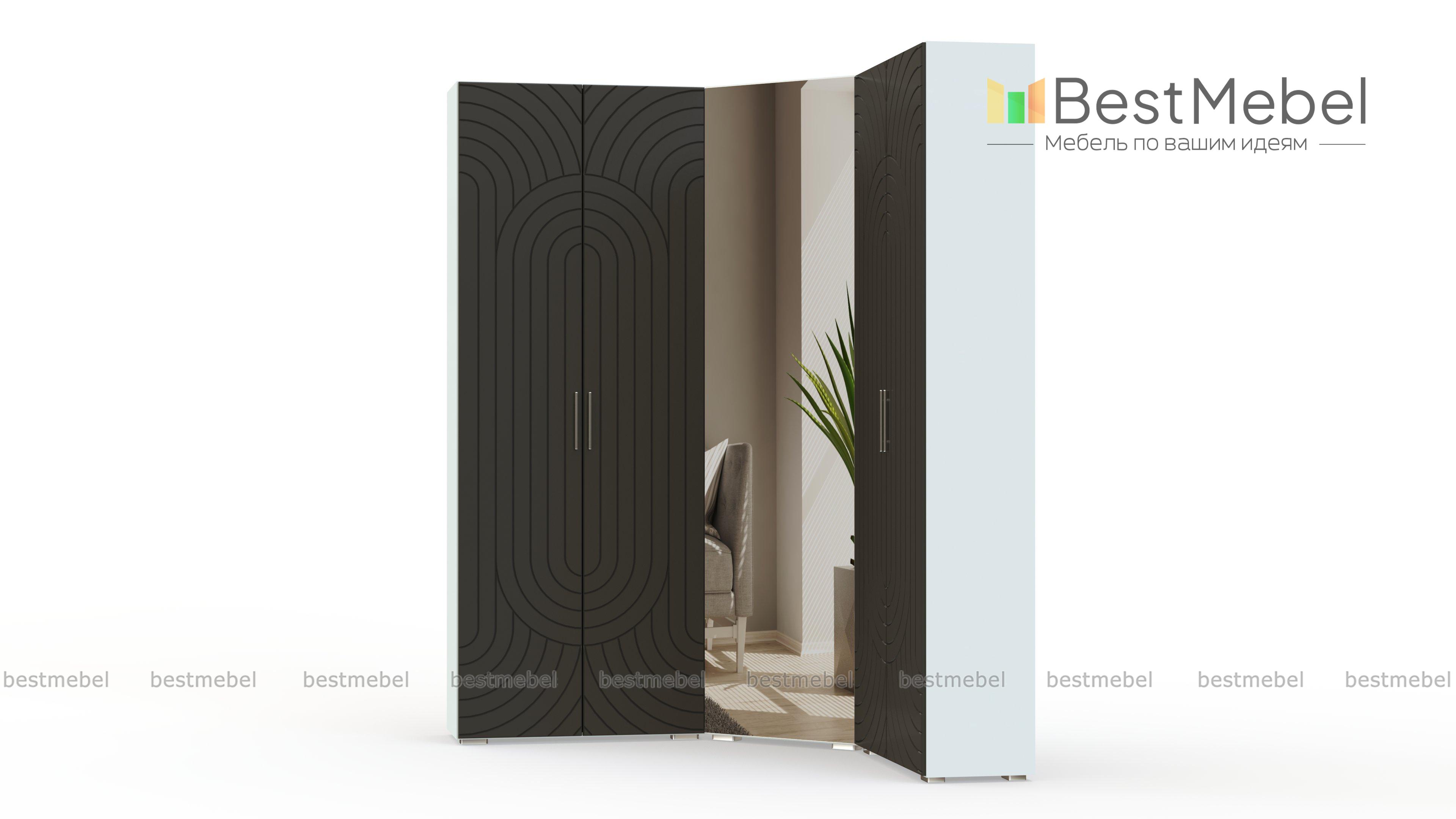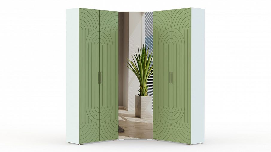 Шкаф угловой Ирис 2 BMS поможет выгодно использовать особенности планировки и нестандартно подойти к организации пространства. Эффектная угловая композиция объединила два двухдверных распашных шкафа с фрезерованными фасадами и однодверный зеркальный в форме трапеции. Вместительные внутренние отделения шкафной группы позволят компактно разместить большое количество вещей – одежды, обуви и аксессуаров. Купить шкаф угловой Ирис 2 BMS приглашаем в наш интернет-магазин с учетом необходимых параметров.