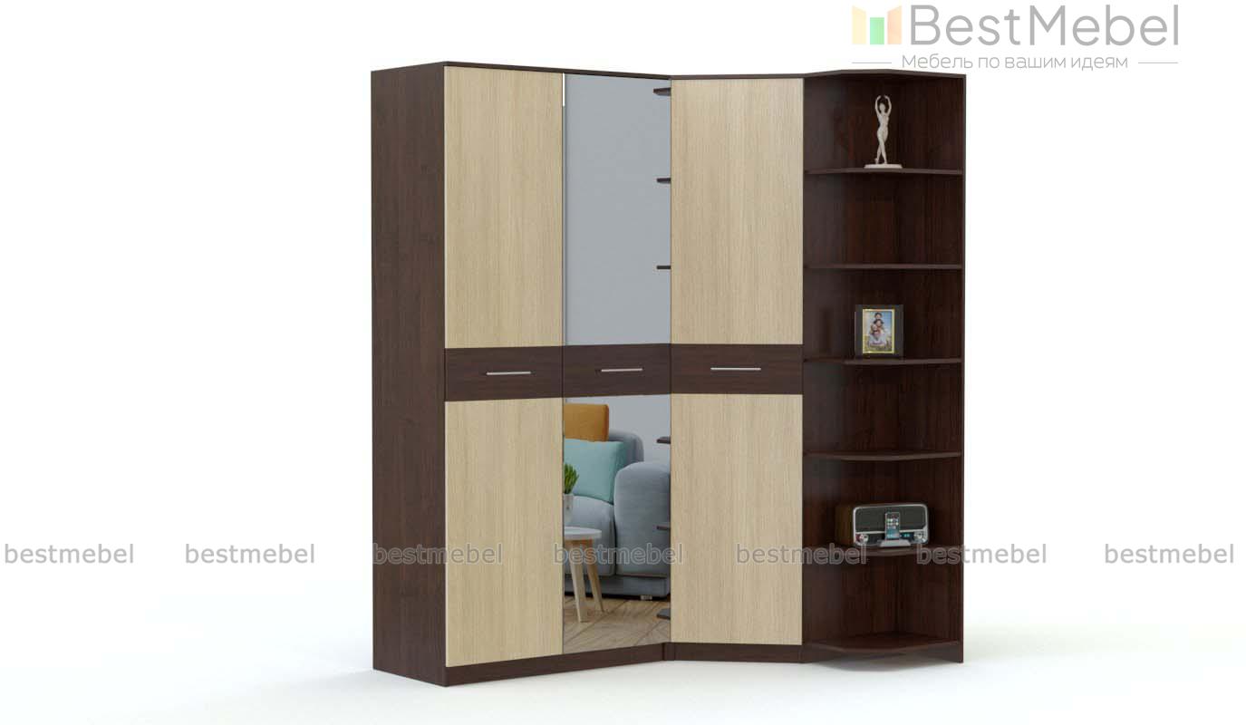 Шкаф угловой Сити BMS станет прекрасным выбором для меблировки современной городской квартиры, сочетая в себе практичность конструкции и трендовый дизайн. Угловая модель с торцевым стеллажом и закрытыми распашными отделениями разместит как одежду и домашний текстиль, так и книги, уходовые принадлежности и декоративные предметы. В оформлении шкафа использованы натуральные оттенки с имитацией древесной текстуры, белый глянец и зеркала. Купить шкаф угловой Сити BMS и рационально организовать пространство вам поможет наш интернет-магазин.