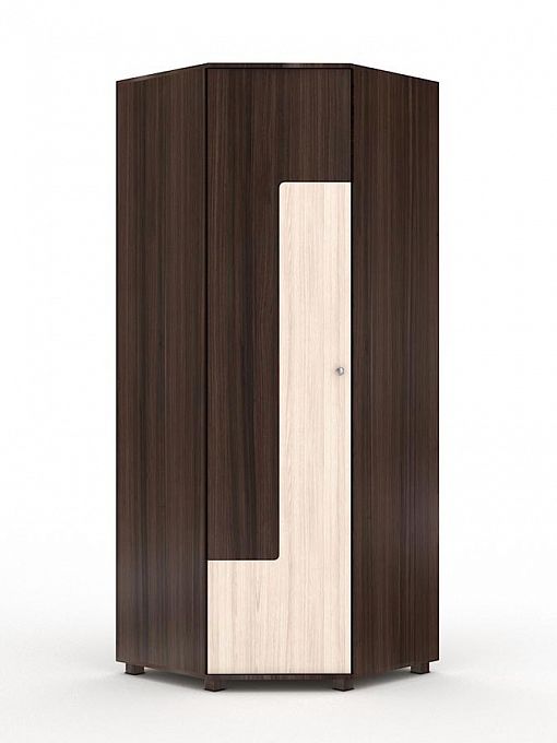 Шкаф угловой СТ2 BMS - элегантная модель в форме трапеции, позволяющая задействовать неиспользуемое обычно пространство. Базовое наполнение включает в себя штангу для вешалок с одеждой, просторную верхнюю полку и целый ряд бельевых. Геометрическая вставка на фасаде шкафа выполнена в контрастном оттенке, эффектно выделяясь на фоне темного древесного корпуса. Купить шкаф угловой СТ2 BMS для меблировки прихожей, спальни или гостиной вы сможете недорого на сайте нашего интернет-магазина.