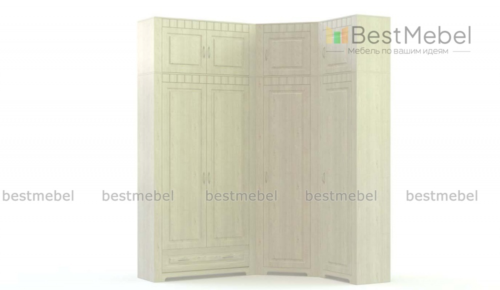 Угловой шкаф Прованс BMS поможет вам создать романтичный интерьер в стиле прованс или классическом. При отличной вместительности шкаф экономит пространство за счет угловой конструкции и позволяет выгодно использовать особенности планировки. Выполненная в светлых древесных тонах и украшенная фрезеровкой, модель оборудована распашными отделениями, выдвижным ящиком для мелочей и антресолью под сезонные вещи. Купить угловой шкаф Прованс BMS для меблировки спальни вы сможете в нашем интернет-магазине.