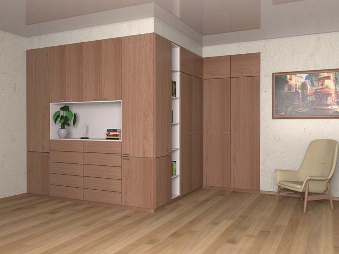 Распашной шкаф 708 BMS представляет собой многофункциональную встроенную конструкцию для современной гостиной. Угловая форма модели поможет эффективно использовать возможности планировки и сделать интерьер комфортным и эргономичным. Шкаф, выполненный в древесных тонах, оборудован платяными и бельевыми распашными отделениями, выдвижными ящиками и выделенными контрастным цветом нишами для книг и предметов декора. Купить Распашной шкаф 708 BMS приглашаем в наш интернет-магазин с учетом необходимых параметров.