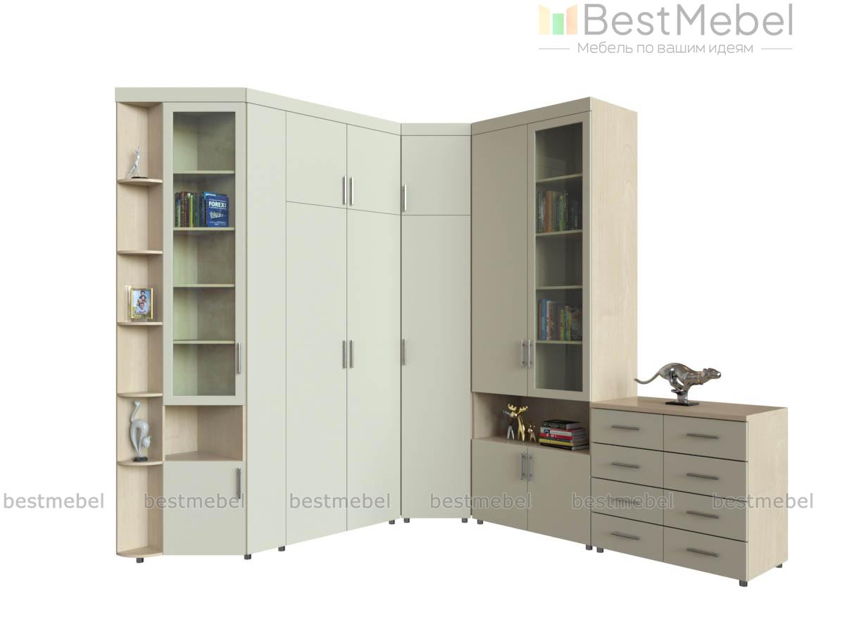Угловой шкаф 96 BMS представляет собой комбинированную модель, которая сделает интерьер современной спальни эстетичным и функциональным. Композиция с фасадами нежного кремового оттенка включает в себя глухие распашные отделения для одежды, антресоль, торцевую секцию с открытыми полками и витриной, книжный шкаф и бельевой комод с двумя рядами выдвижных ящиков. Наличие большого количества разноплановых отделений позволит компактно разместить все необходимое. Купить Угловой шкаф 96 BMS и эффективно использовать пространство вам всегда поможет наш интернет-магазин.