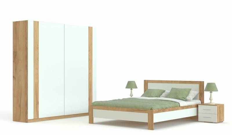 Современная, очень уютная модель с легким оттенком классики. Сочетание в отделке естественных оттенков под массив дерева и белого создаст в вашей спальне особую атмосферу. В состав этого комплекта входят удобная кровать с контрастной оригинальной окантовкой, прикроватные традиционные тумбочки с выдвижными ящиками и вместительный шкаф с отделением для вешалок и полками внутри. Порадует спальня Адита BMS не только высоким качеством материалов, но и доступной в нашем интернет – магазине ценой.