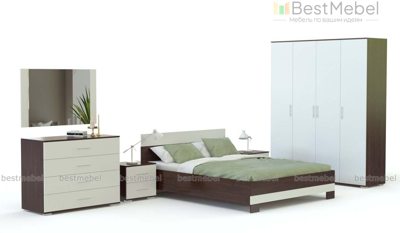 Стильный и доступный по цене модульный комплект поможет вам решить проблемы с планировкой благодаря наличию разнообразных элементов и универсальной цветовой гамме. Спальня Интегро BMS состоит из просторной кровати с тумбами, четырехстворчатого шкафа, вместительного комода с выдвижными ящиками и навесного зеркала. Минималистичные формы, глянцевая поверхность фасадов и оригинальные ручки – рейлинги делают образ этой модели особенно необычным и современным.
