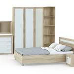 Спальня Токио 7 BMS по-восточному лаконична и выигрышно смотрится на контрасте древесных оттенков. В пространство у изголовья кровати гармонично вписываются две тумбы, для хранения постельного белья, одежды и всевозможных аксессуаров предусмотрены угловой шкаф с торцевым стеллажом и дополненный навесным зеркалом комод. Для отделки фасадов использованы широкие накладки и декоративная решетка. Купить спальню Токио 7 BMS с учетом необходимых размеров вы сможете в нашем интернет-магазине.