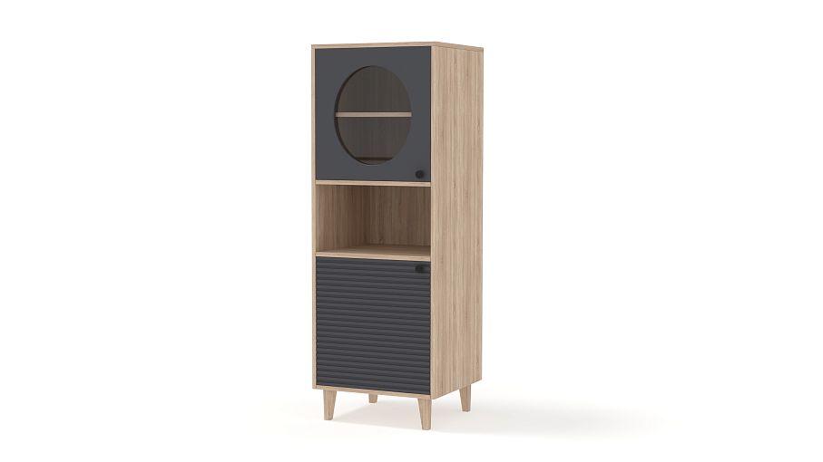 Стеллаж Брукс 1 BMS поможет интересно разместить любимые вещи и скрыть менее эстетичные. Секция с круглым вырезом, полкой и стеклом скомбинирована с нижним закрытым отделением и нишей. Выразительный дизайн создают актуальные оттенки и рифленая отделка, а компактные размеры стеллажа с витриной позволяют вписать его даже в небольшие детские и гостиные. Купить стеллаж Брукс 1 BMS в удобном размере и любых оттенках из каталога приглашаем в наш интернет-магазин.