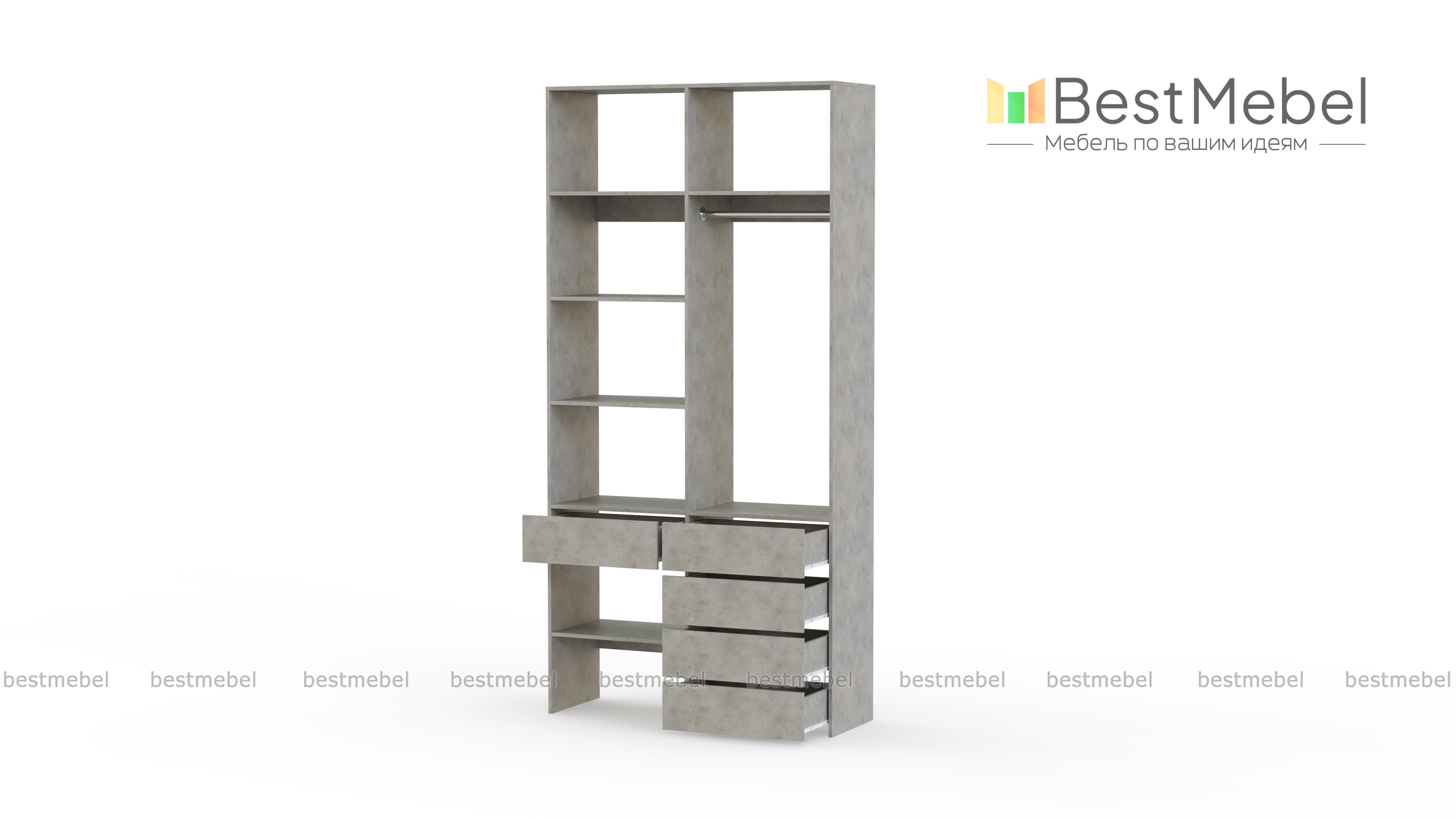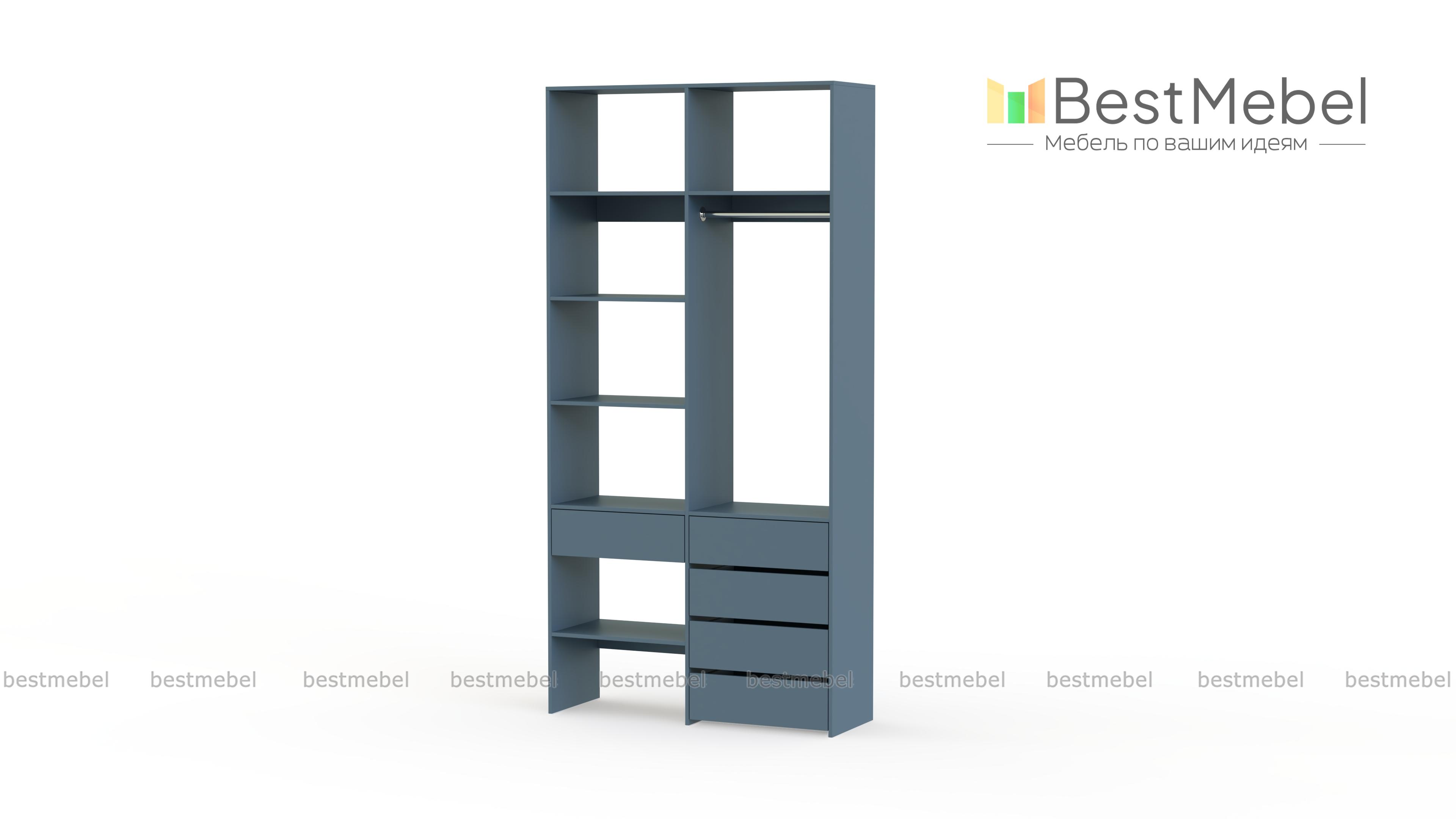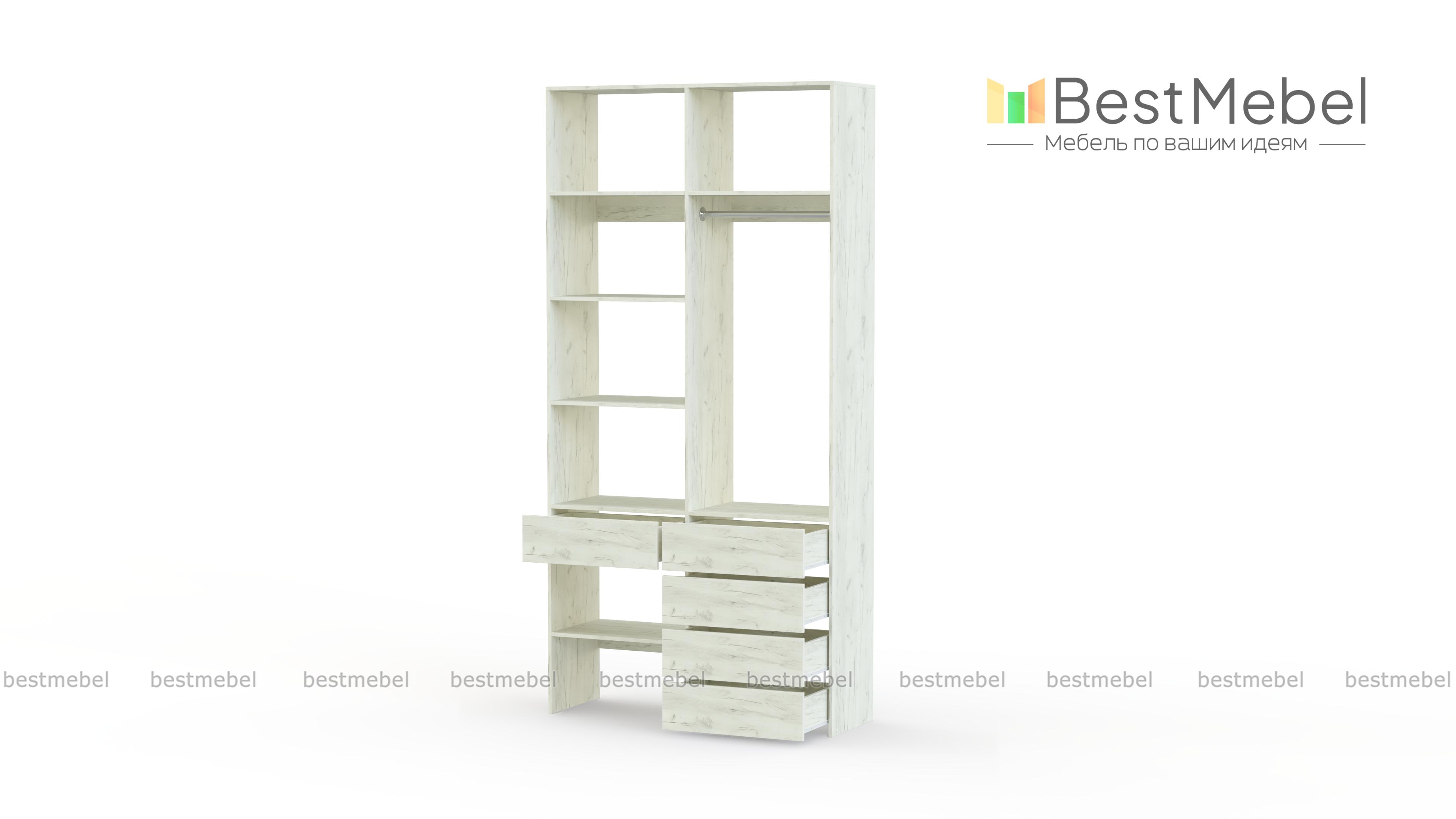 Стеллаж для одежды Мирта 1 BMS подходит для обустройства гардеробной, спальни или торгового зала. Изготовленная из высококачественной ламинированной плиты, конструкция обладает прочностью и долговечностью. Открытые полки дополнены штангой и пятью выдвижными ящиками, позволяя разместить одежду на вешалках и в сложенном виде, обувь и аксессуары. Купить стеллаж для одежды Мирта 1 BMS в необходимом размере и цвете вы сможете на сайте нашего интернет-магазина.
