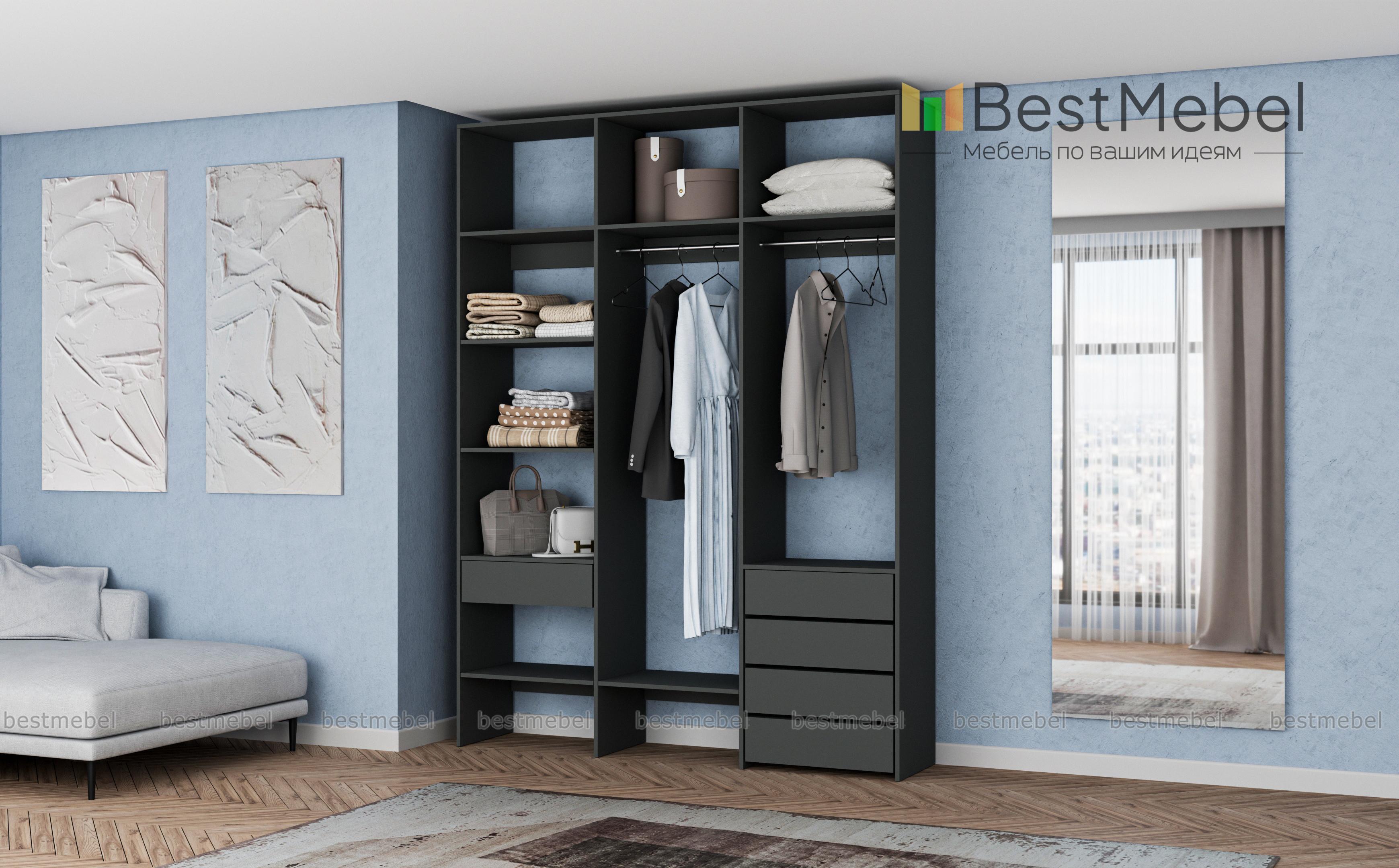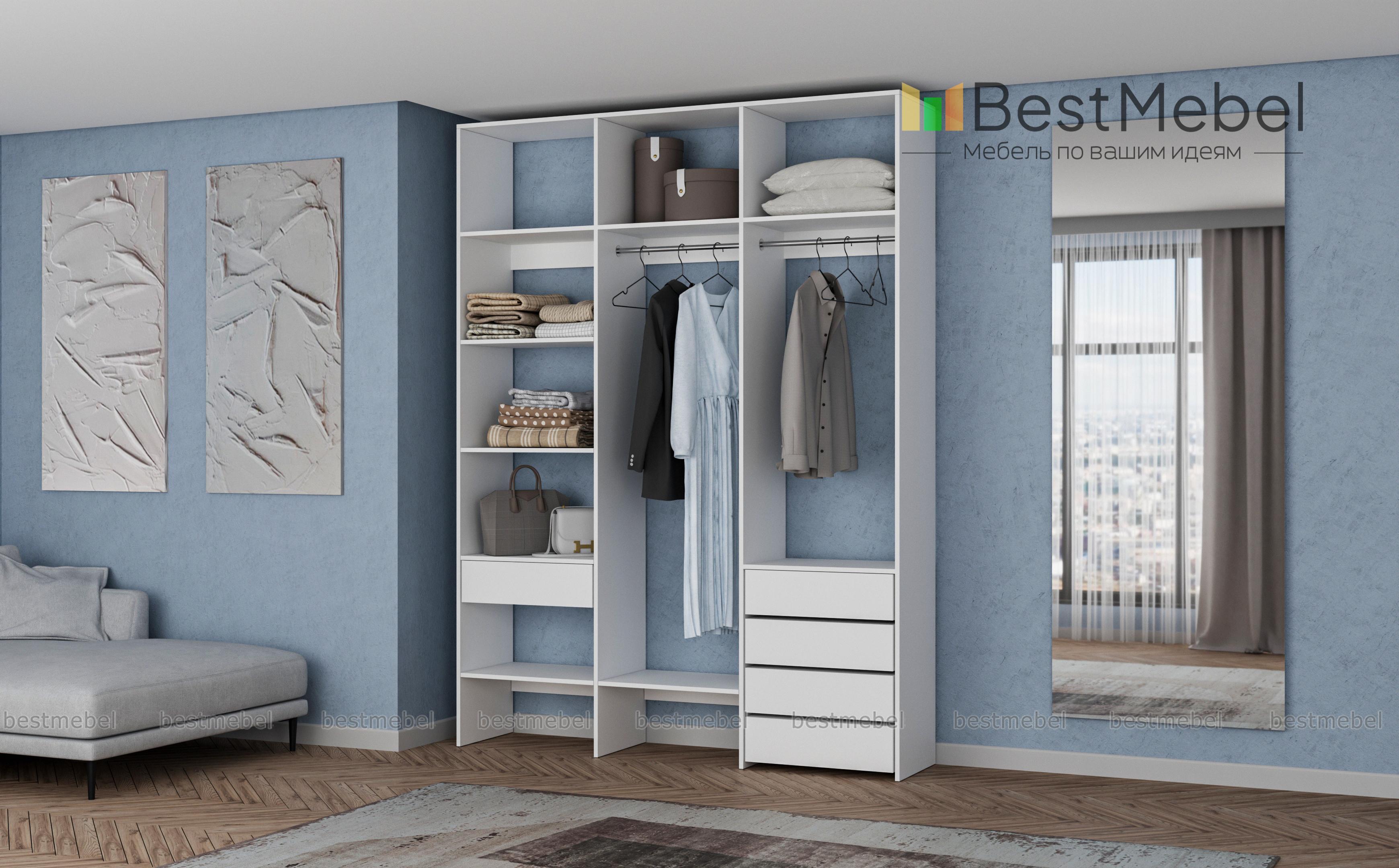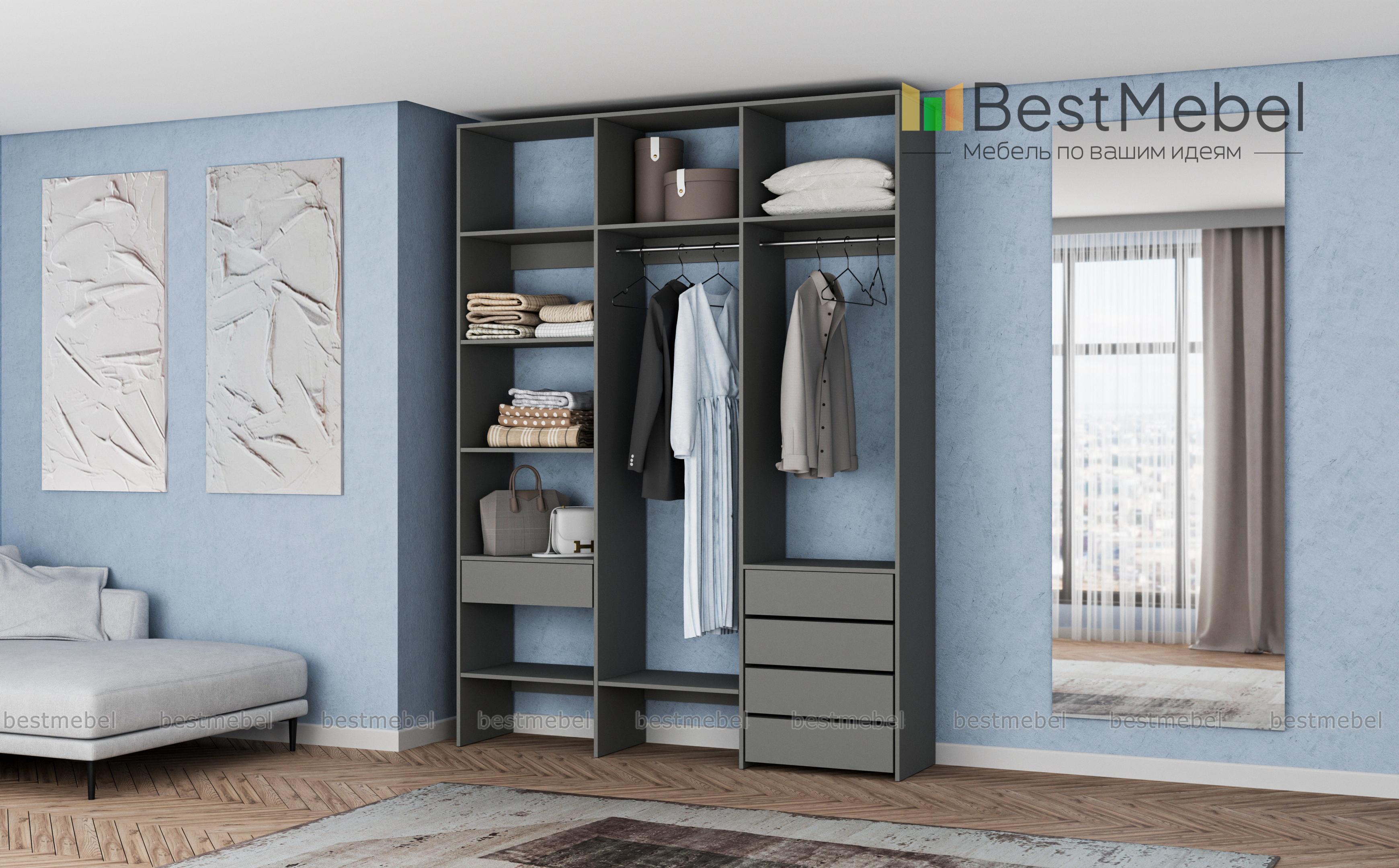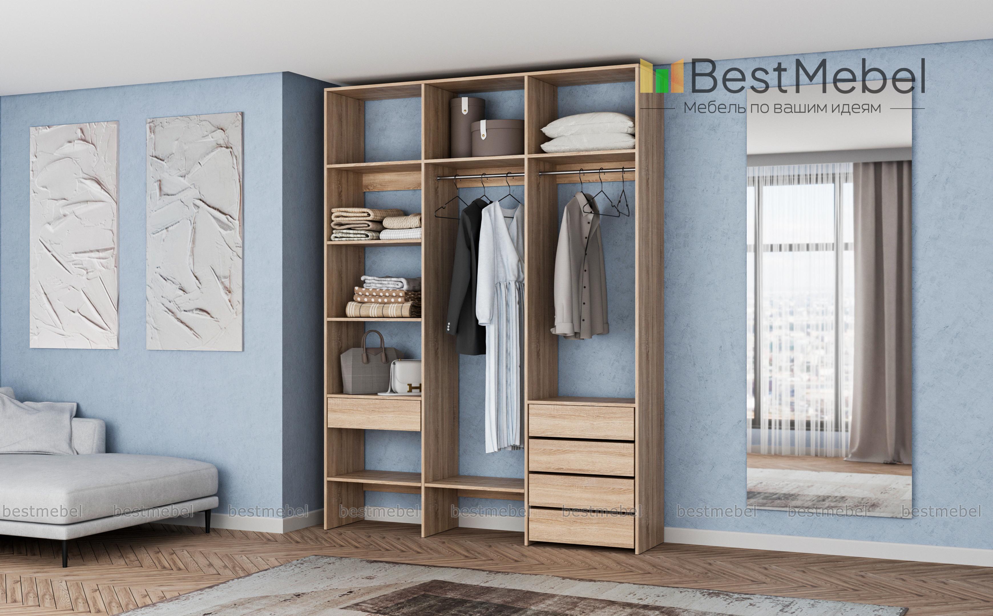 Стеллаж для одежды Мирта 17 BMS упорядочит хранение гардероба и сэкономит пространство. Многофункциональная конструкция с полками, двумя штангами и выдвижными ящиками легко заменит платяной шкаф и комод. Открытая модель стеллажа обеспечивает отличный обзор содержимому, помогая быстро найти нужную вещь. Купить стеллаж для одежды Мирта 17 BMS, подобрав необходимые размеры и гармонирующий с другой мебелью оттенок, приглашаем в наш интернет-магазин.