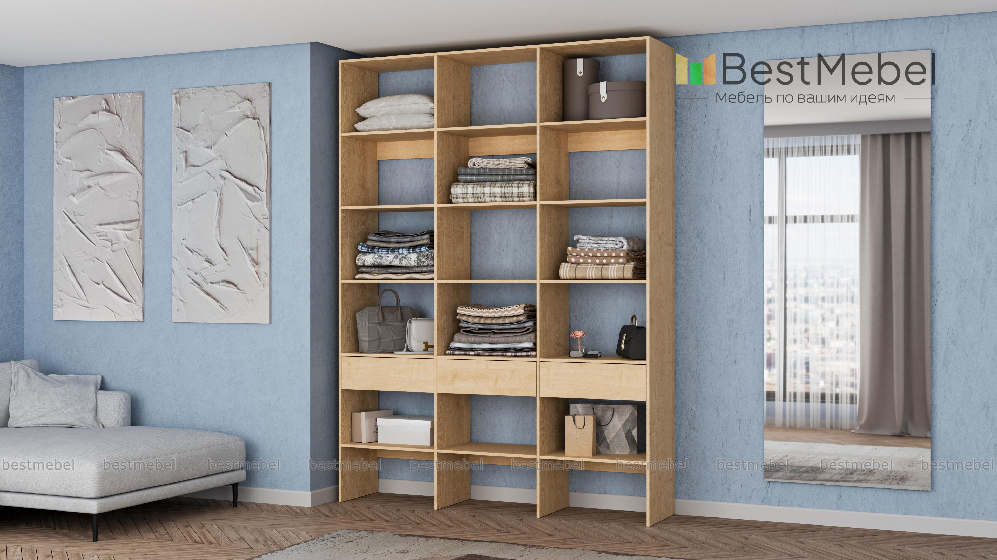 Стеллаж для одежды Мирта 56 BMS прекрасно подойдет для хранения сложенной одежды, домашнего текстиля, коробок с вещами и мелкого трикотажа. Пространство трехсекционного стеллажа разделено просторными полками, а в нижней части дополнено выдвижными ящиками. Благодаря изготовлению из ламинированной плиты конструкция отличается прочностью, поверхности надолго сохраняют привлекательный внешний вид. Купить стеллаж для одежды Мирта 56 BMS вы сможете на сайте нашего интернет-магазина, подобрав цвет и размеры.
