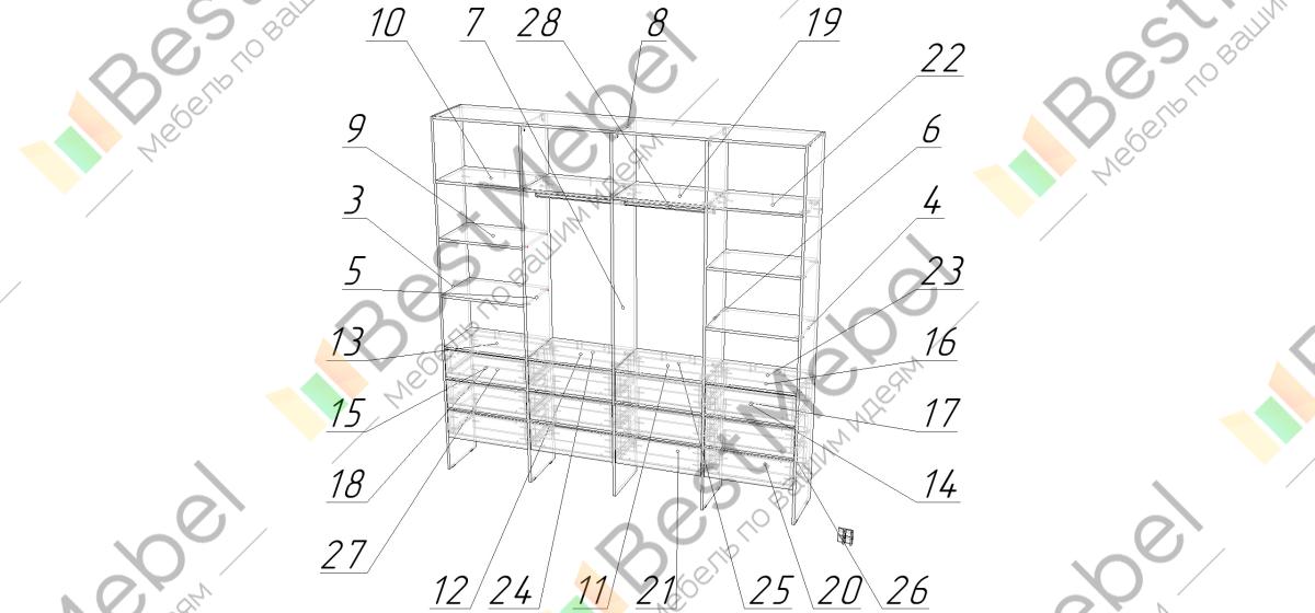 Стеллаж для одежды Мирта 64 BMS — современное решение для вашей прихожей и гардеробной. Конструкция из износостойкой ламинированной ДСП базового оттенка надежна, эстетична и доступна по цене. Практичная комбинация двух штанг, верхних и боковых полок, а также большого количества выдвижных ящиков делает хранение гардероба максимально удобным. Купить стеллаж для одежды Мирта 64 BMS вы сможете на сайте нашего интернет-магазина, подобрав по своему вкусу цвет и размеры.