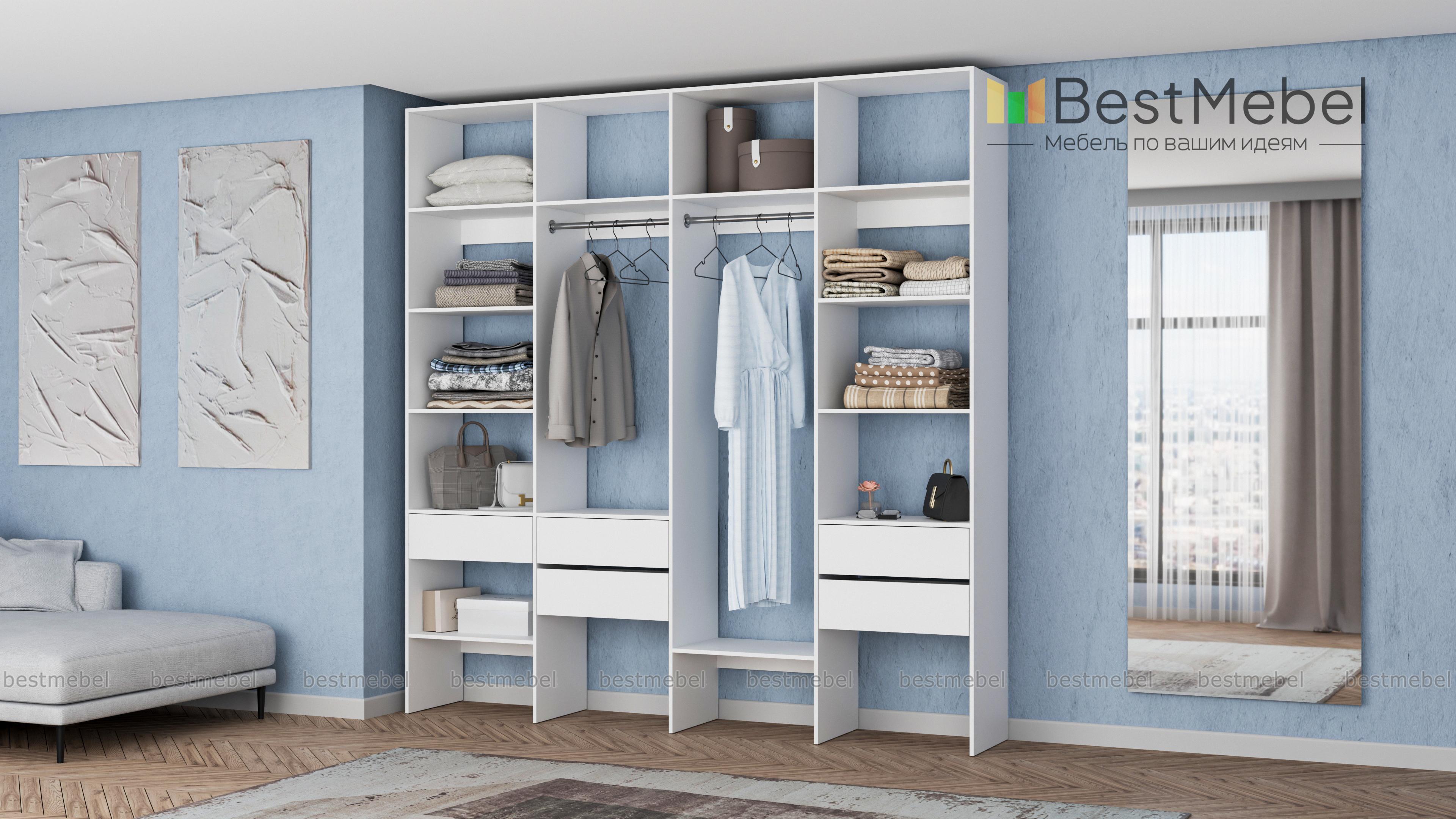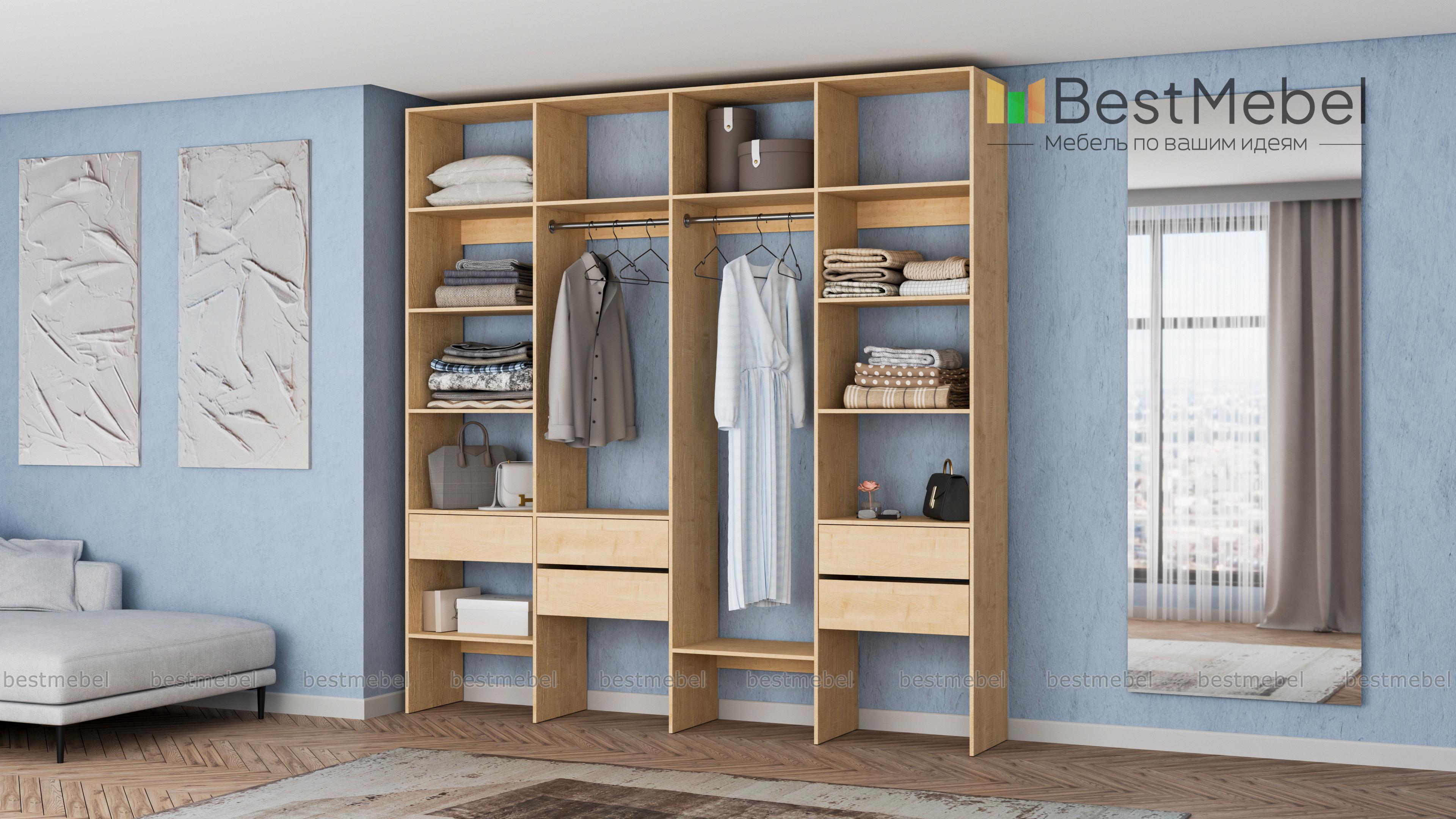 Стеллаж для одежды Мирта 68 BMS поможет вам рационально использовать пространство. Одежда и обувь, аксессуары и прочие необходимые вещи будут всегда в удобном доступе благодаря комбинации двух штанг, расположенных на разной высоте полок и пяти выдвижных ящиков. Прочная ламинированная плита обеспечивает конструкции надежность и немаловажную для гардеробной простоту ухода. Купить стеллаж для одежды Мирта 68 BMS приглашаем в наш интернет-магазин с выбором цвета и габаритов.