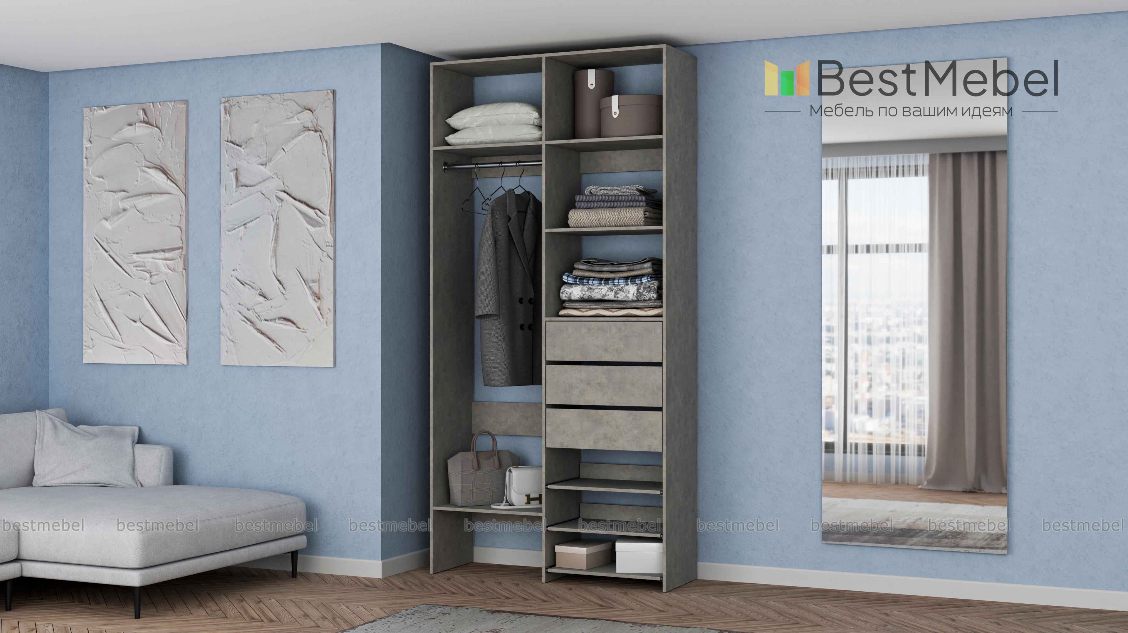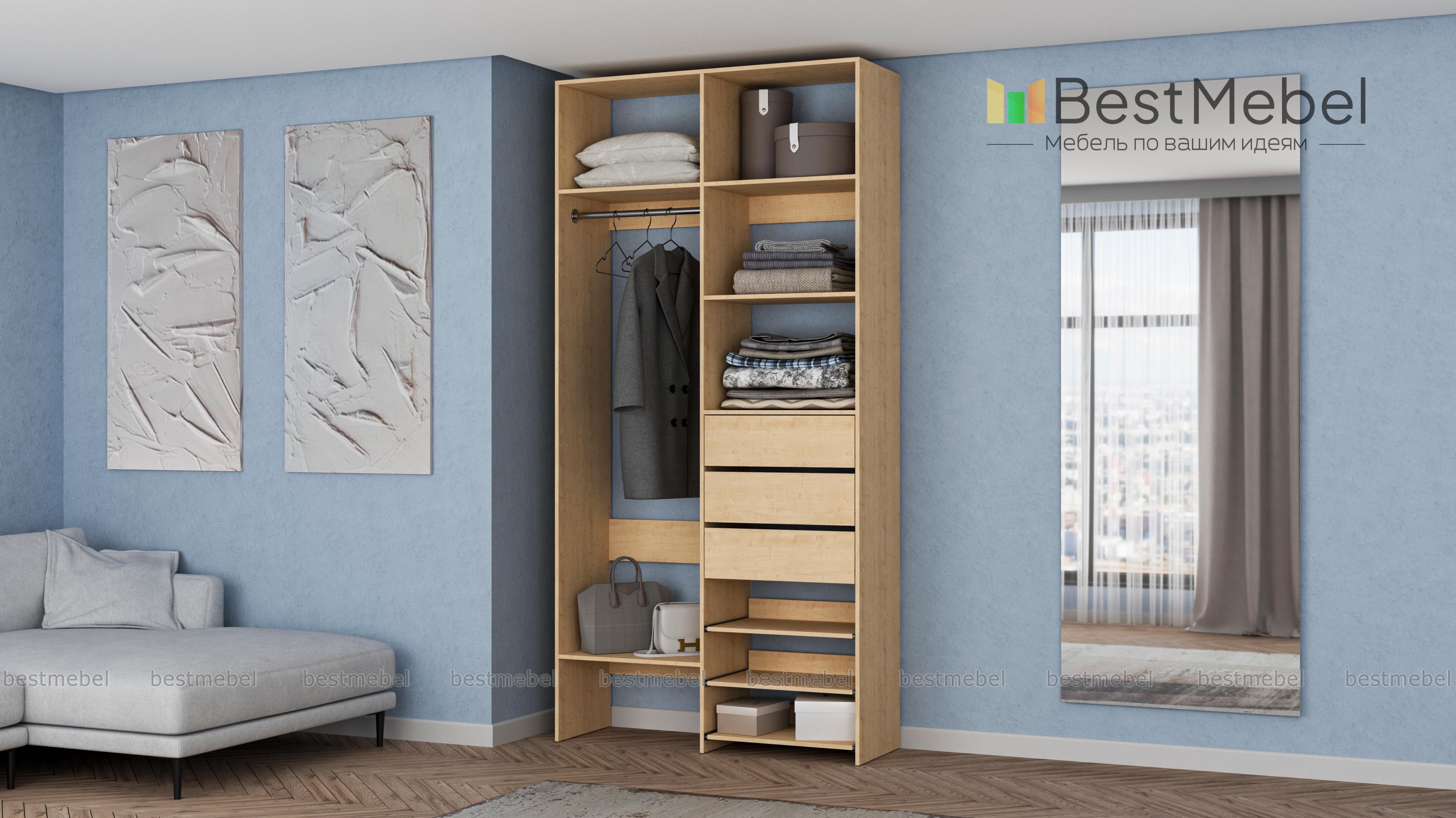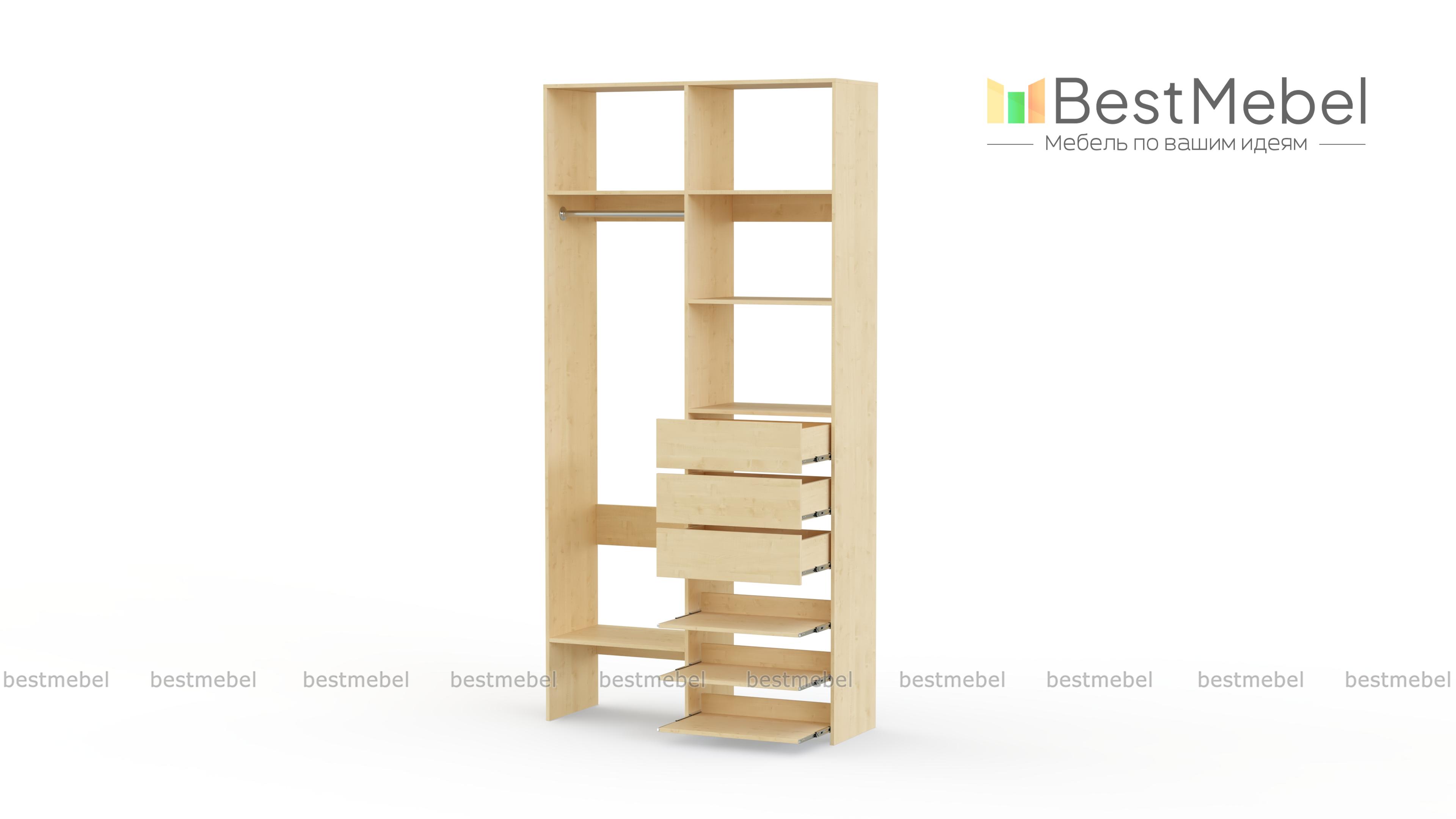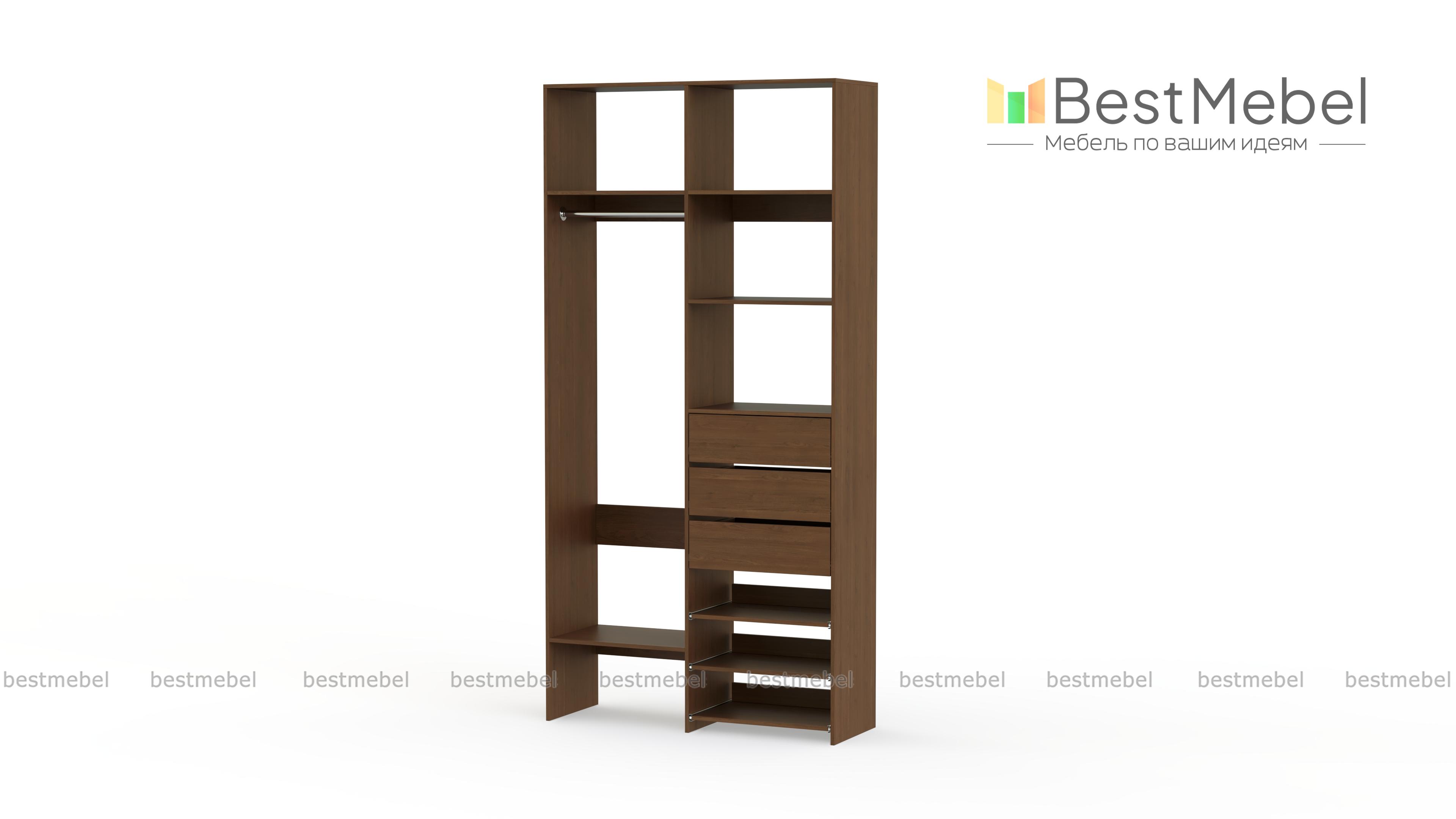 Стеллаж для одежды Мирта 84 BMS обеспечит базовому гардеробу компактное и бережное хранение. Платяная штанга, три ящика, полки стационарные и выдвижные располагаются на удобной для ежедневного пользования высоте. Благодаря небольшой ширине стеллаж легко впишется в ограниченное пространство гардеробной, маленькой спальни или прихожей. Купить стеллаж для одежды Мирта 84 BMS вы сможете недорого в нашем интернет-магазине, выбрав подходящий размер и цвет.