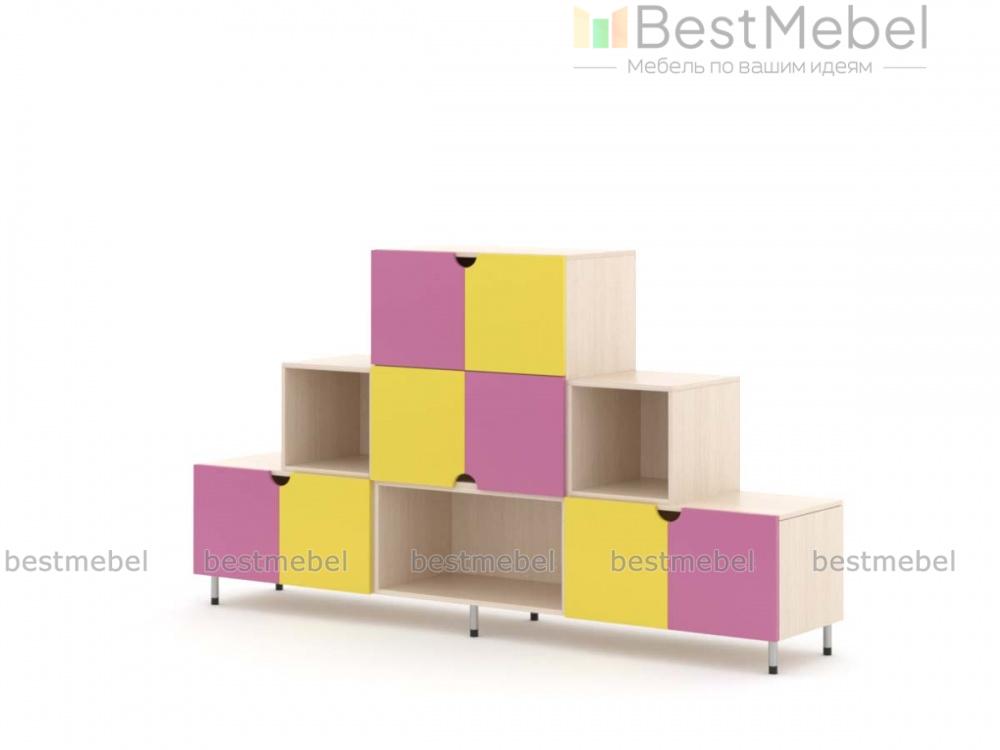 Стеллаж Хлоя 14 BMS станет прекрасным выбором для меблировки детских садов и прочих дошкольных учреждений. Яркая ступенчатая модель оборудована открытыми секциями и глухими распашными шкафчиками с ручками-вырезами для хранения игрушек, книг, наборов для творчества и многого другого. Высокие регулируемые ножки обеспечивают конструкции устойчивость и внешнюю легкость. Купить стеллаж Хлоя 14 BMS приглашаем в наш интернет-магазин с возможностью изготовления по индивидуальным размерам.