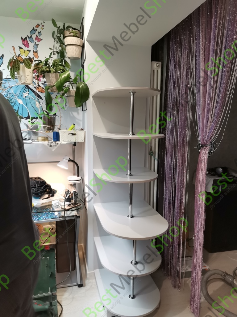 Отличный стеллаж ЭСКИЗ №00000138368 ! Муж очень быстро его самостоятельно собрал! Удобная вещь для книг, фотографий ,цветов и ночника.Отлично закрыл батарею и послужил продолжением стола.Спасибо за товар!