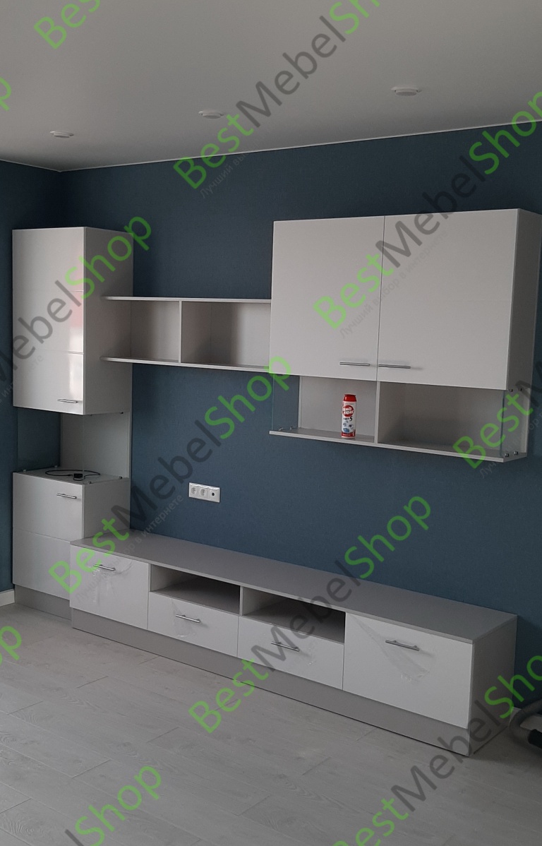 Гостиная Глянец 5 BMS – прекрасный вариант для просторного стильного помещения. В такой модульной системе есть приятный плюс. Владелец может самостоятельно организовать расстановку модулей так, как ему будет удобнее и привлекательнее. Благодаря тому, что композиция обогащена различными шкафами и тумбами, она стала функциональной, вместительной. Интересная сиренево-синяя подсветка за стеклянными вставками придаёт помещению и комплекту изюминку. Глянцевое покрытие роскошно богато смотрится в общей обстановке. Купить гостиную Глянец 5 BMS всегда по низкой цене можно только у нас.