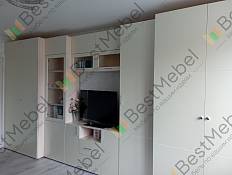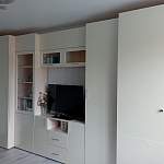 Отличный вариант. Получилось во всю длину стены. Максимальная вместимость, функциональность и современный внешний вид.