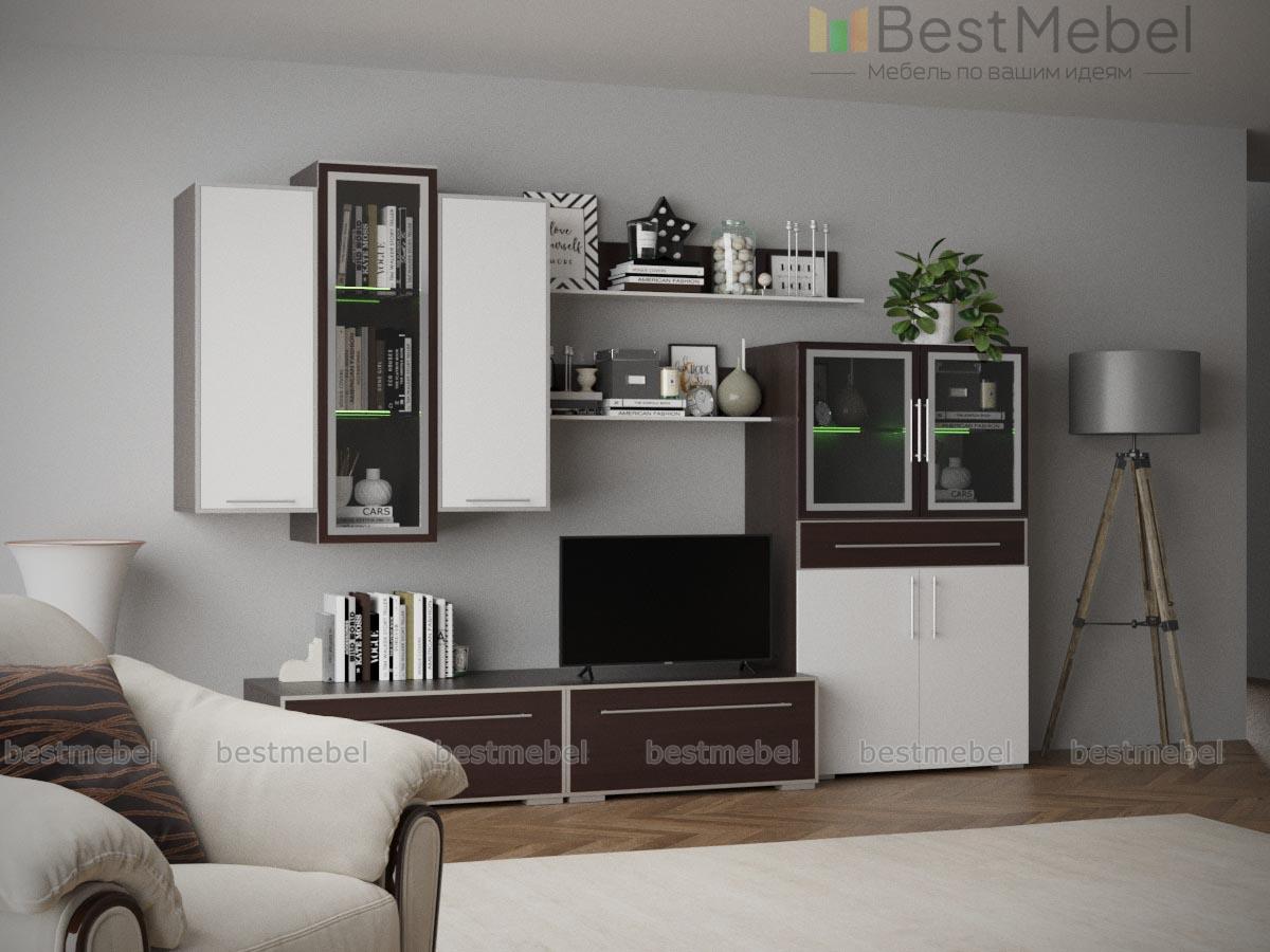 Стенка EGO-1 Вариант 9 BMS – стильный комплект для современной гостиной из отдельных модулей, которые могут быть скомбинированы по вашему вкусу и в соответствии с возможностями помещения. Нестандартное цветовое решение – контрастные оттенки и окантовка алюминиевыми рамками, делает модель особенно интересной. В комплект входят комбинированный шкаф с витриной, низкие тумбы под ТВ, навесные пеналы, узкая витрина и навесные открытые полки. Купить комплект EGO-1 Вариант 9 BMS по лучшей цене приглашаем в наш интернет-магазин.