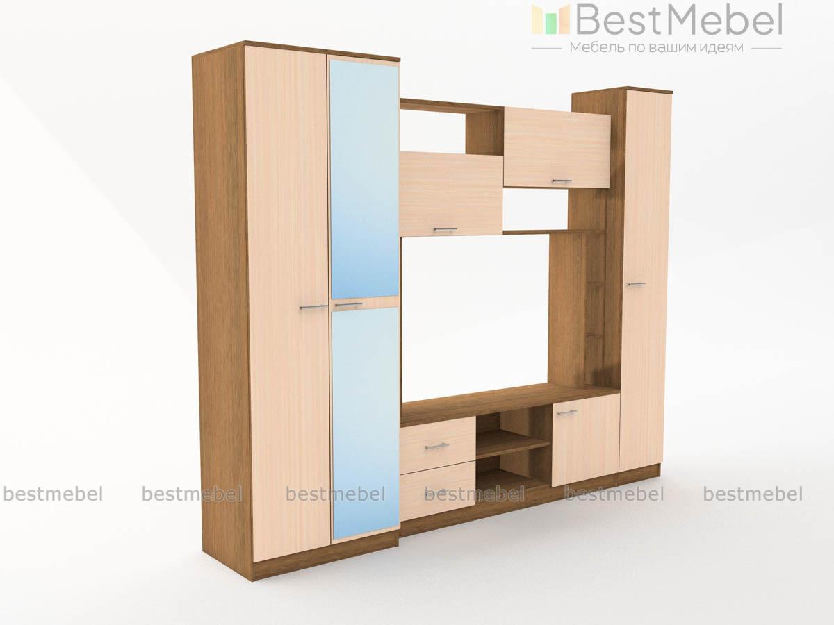 Стенка для гостиной Флора-2 BMS отличается гармоничным сочетанием светлых фасадов и корпуса темных оттенков под массив дерева. Простой, но элегантный дизайн может стать частью как классического, так и современного интерьера. Продуманная система открытых и распашных отделений позволит разместить предметы гардероба, видео- и аудиоаппаратуру, книги и многое другое. В комплекте пенал с полками, тумба, навесная секция и платяной шкаф с фасадом, декорированным зеркальными вставками с рисунком. Купить стенку для гостиной Флора-2 BMS по доступной цене вы сможете в нашем интернет-магазине.