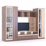 Стенка Флоренция-2 BMS – это продуманная система хранения и элемент дизайна современной гостиной. Лаконичная и выполненная в нейтральных древесных тонах, модель гармонично вписывается в современные интерьеры. Композиция с просторной нишей под ТВ в центре включает в себя широкую тумбу с нишами и ящиками, мини-стеллаж и навесную полку для книг и приятных мелочей, а также симметрично расположенные распашные шкафы для белья и одежды. Фасады шкафов украшены зеркальными вставками с пескоструйным орнаментом. Купить стенку Флоренция-2 BMS приглашаем в наш интернет-магазин.