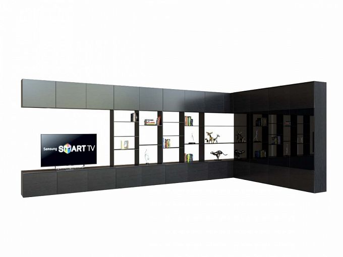Стенка-горка угловая Хитклиф № 2 BMS поможет нестандартно подойти к организации пространства современной гостиной. Особенно эффектная в просторном помещении, крупногабаритная стенка гармонично сочетает темные поверхности под массив дерева и вставки стекла. Угловая конструкция, включающая глухие шкафы для одежды, тумбу под ТВ, навесные антресольные модули и книжные стеллажи, позволит максимально эффективно использовать возможности планировки. Купить стенку-горку угловую Хитклиф № 2 BMS приглашаем в наш интернет-магазин по демократичной цене.