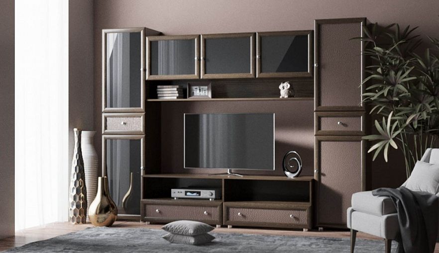 Стенка-горка в гостиную Орлеан-3 BMS поможет оригинально оформить зону ТВ в интерьере небольшой комнаты. Современная горка состоит из пары симметрично расположенных колонок с распашными отделениями и выдвижными ящиками и центральной секции с тумбой под аппаратуру и межсекционными полками для книг, посуды и декоративных предметов. Рамочные фасады дополнены эффектными вставками под кожу. Купить стенку-горку в гостиную Орлеан-3 BMS приглашаем в наш интернет-магазин, подобрав цветовое решение.