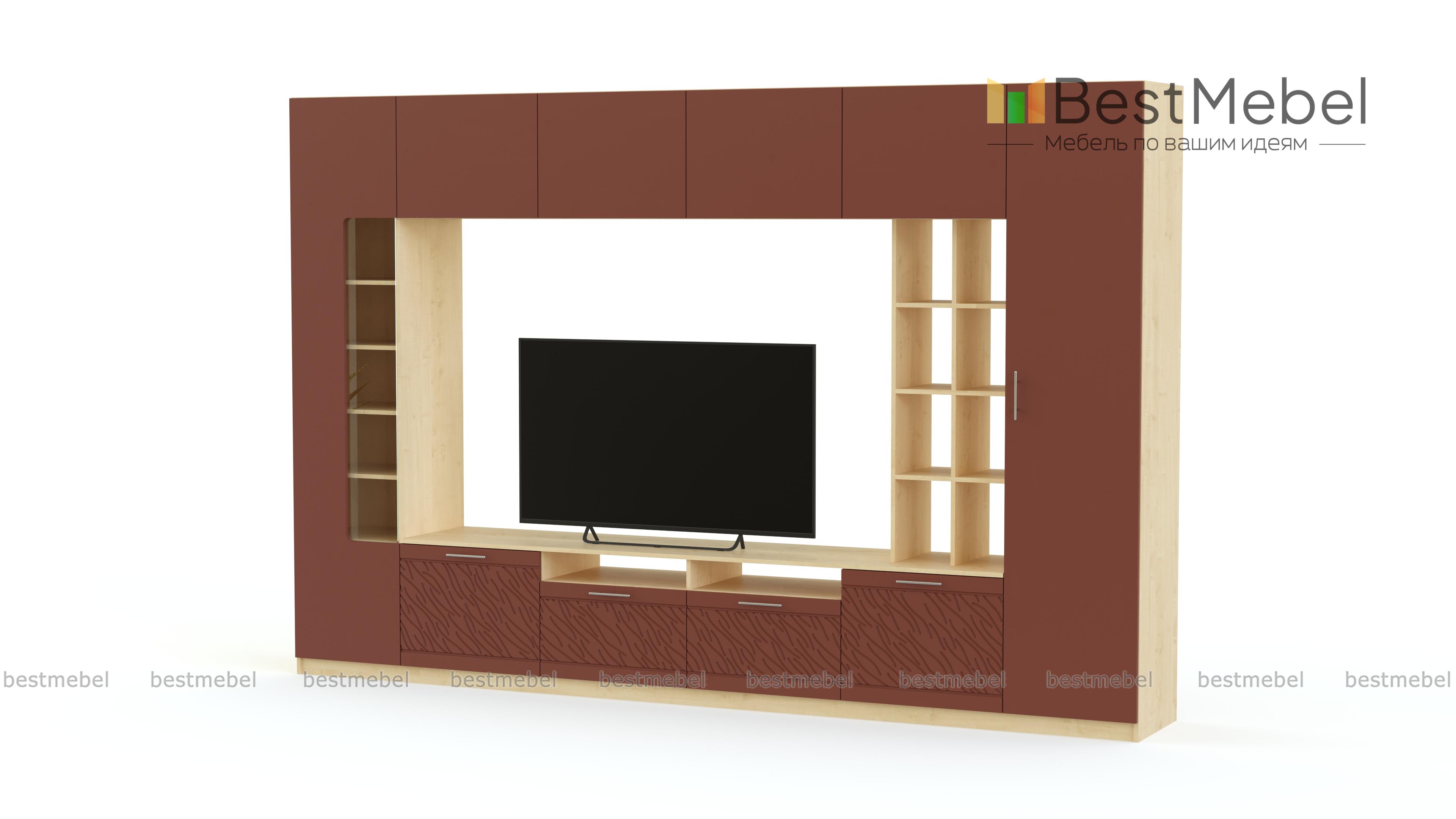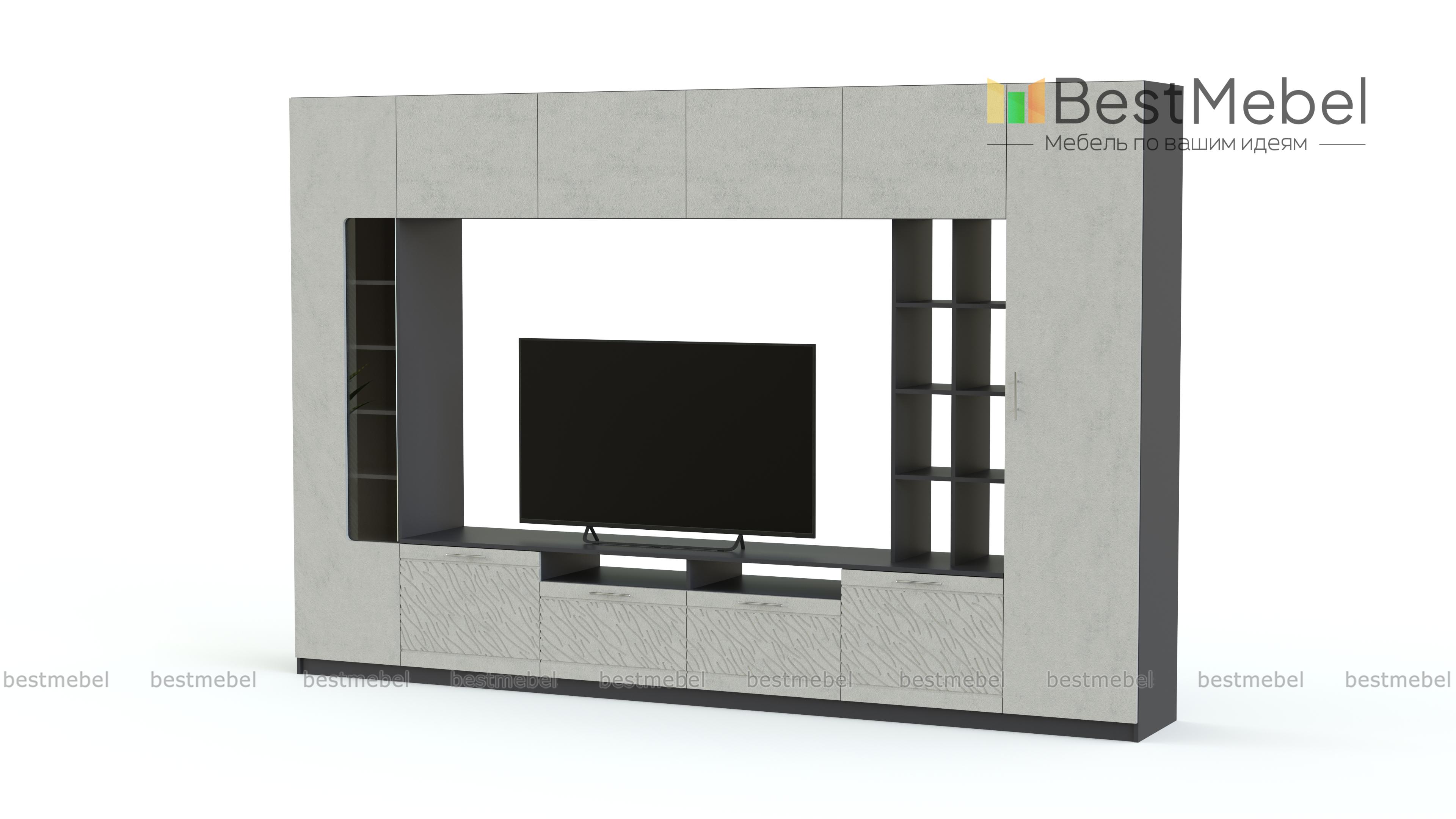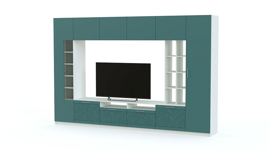 Стенка-горка Вельвет 4 Глянец BMS будет по достоинству оценена поклонниками минимализма. Лаконичная по форме, модель смотрится выигрышно с глянцевыми фасадами, декорированными рельефным рисунком, и станет главным акцентом в интерьере гостиной. В комплект входят две колонки - с витринным отделением и глухая, низкая тумба, стеллаж и антресольная секция. Телевизор, размещенный в просторной нише, станет частью общей композиции. Купить стенку-горку Вельвет 4 Глянец BMS вы сможете в нашем интернет-магазине, подобрав оптимальные параметры.