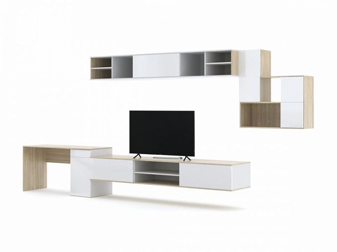 Стенка с рабочим местом Тельма BMS включает в себя все необходимое для оформления зоны ТВ и организации комфортного рабочего места. Практичное решение для молодежной комнаты или студии, композиция объединила однотумбовый письменный стол, широкую тумбу с нишами под аппаратуру и вместительные навесные полки с открытыми и глухими отделениями. В оформлении использованы древесные тона и универсальный белый. Купить стенку с рабочим местом Тельма BMS приглашаем к нам в интернет-магазин.