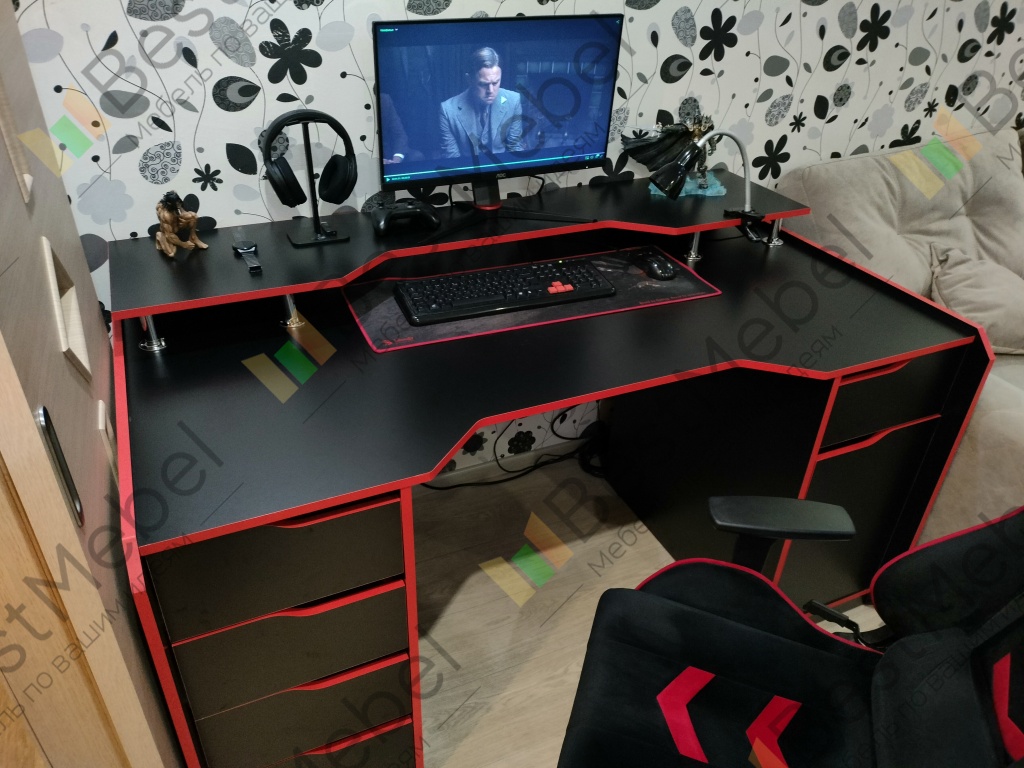 Заказ 00000854678, изделие ЭСКИЗ №00000854678 Геймерский стол Харли 03 BMS (1800х950х970)Стол сделали полностью по моим размерам, на, вроде бы 4-ёх этапов согласования. В общем, если требовать от конструкторов то чего ты хочешь, они сделают, если конечно ваши запросы реальны в реализации.Единственный минус первого присланного эскиза половины размеров просто не было, пришлось самому всё прикидывать, тут додумать.Но в результате всё сделано по моим размерам, качественно, претензий нет, разве что, нету инструкции по сборке, выглядит как навязывание услуги, но если вы достаточно матёрый "Одинокий волк", проблем не будет.Мне понравилось, считаю, что цена полностью оправдана!