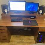 Заказ №786855Отличный компьютерный стол, прочный, не сыпется. Неприятного запаха не имеет. На нем свободно размещается все что необходимо для работы. Так же порадовало количество ящиков и то что они вместительные