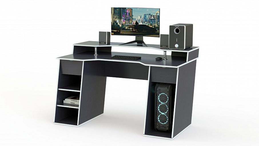 Игровой стол Техно 2.10 BMS – это двухтумбовая модель с эргономичной столешницей и скошенным фасадом. Стол в нейтральном черном цвете с белой кромкой оборудован открытыми полками и выдвижными ящиками с торцевыми ручками для удобного хранения рабочих материалов, а также нишей под системный блок. Надстройка расширит функционал стола, позволяя разместить монитор и необходимые периферийные устройства. Купить игровой стол Техно 2.10 BMS вы сможете на сайте нашего интернет-магазина.