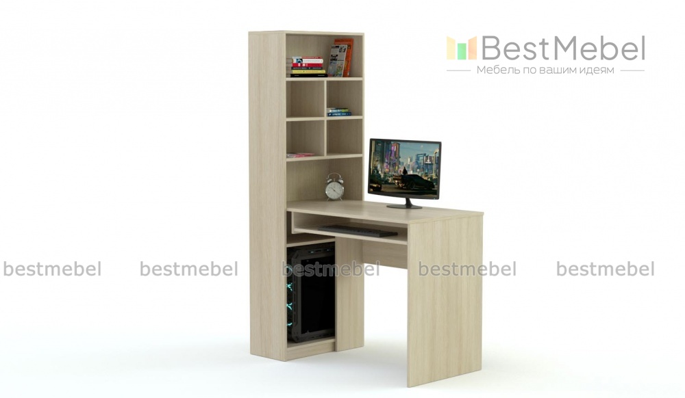 Недорогая компактная модель 10.04 BMS максимально проста и функциональна. В ней нет ничего лишнего, комфортную работу обеспечит удобный стол с выдвижной полкой для клавиатуры и вместительный стеллаж с открытыми секциями и отделением для системного блока. Нейтральная расцветка под массив дерева и угловая конструкция позволят легко вписать столику и в офисный, и в домашний интерьер. В нашем интернет-магазине вы сможете приобрести эту модель по приятной цене.