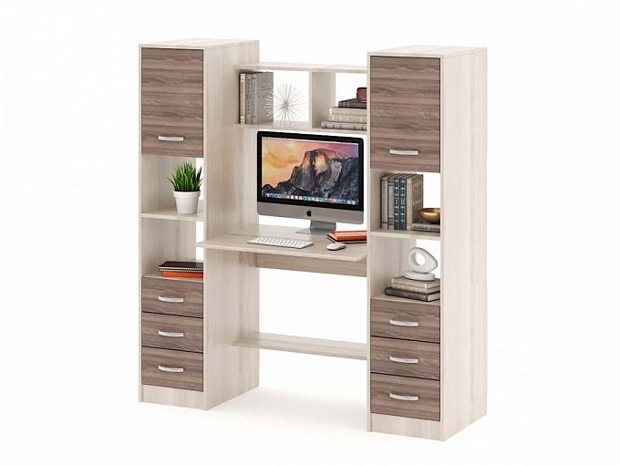 Компьютерный стол Август-8 BMS отличается продуманной конструкцией, которая обеспечит не только комфортную работу за компьютером, но и размещение в зоне быстрого доступа необходимых вещей. Столешница дополнена нижней полкой и надстройкой, а по бокам располагаются комбинированные стеллажи с выдвижными ящиками и распашными отделениями. Универсальное цветовое решение – сочетание светлых и темных древесных тонов на выбор, позволит органично вписать модель в меблировку дома или офиса. Купить компьютерный стол Август-8 BMS вы сможете в нашем интернет-магазине.