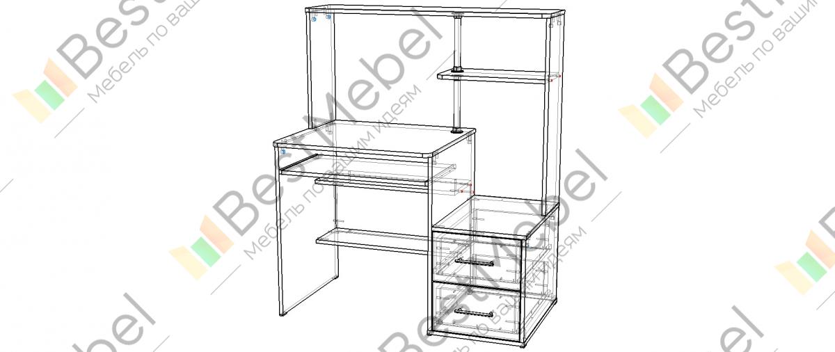 Заказ № 00000516487.Недавно сделал ремонт в комнате, решил купить компьютерный стол, которого не было. Долго выбирал альтернативу, но все не подходило, пока я не увидел стол МБ 46.1 BMS в интернет-магазине мебели «Bestmebelshop». Он меня устроил и по внешнему виду, и по размерам, и конструкции, а теперь делюсь впечатлениями и нюансами. Компьютерный стол МБ 46.1 BMS является хорошим вариантом для комнаты благодаря компактным размерам и яркому современному дизайну. Модель оборудована удобной для письма и работы за компьютером столешницей, выдвижной полкой для клавиатуры, тумбой с двумя ящиками, совмещенной с боковиной, и надстройкой на хромированной опоре. Есть возможность изменить размеры, цвет и другие параметры изделия.Почему выбрал. Во-первых, мне понравился внешний вид — смотрится стильно и классно. Во-вторых, выбрал нужную мне расцветку (белый глянец - фасад, остальные детали белые гладкие), другие варианты не подошли бы, поскольку вся мебель в комнате имеет именно такое исполнение. А так цветов много: венге, дуб молочный и др., так что мебель для компьютера можно подобрать практически для любого интерьера.В-третьих, мне нужен был длинный стол, изготовленный по индивидуальному заказу. Это решение позволило разместиться на моем столе все, что мне нужно было и вписаться столу в размер комнаты рядом с комодом.Сборка. Без опыта работы я сам собирать не решился, а доверил это дело специалисту, который собрал быстро и качественно.Обращаю ваше внимание на отсутствие отверстия для кабелей и розетки для стола которую можно было выбрать а параметрах стола дополнительно. Розетку для стола не заказал потому что это невозможно было сделать чисто технически из-за того что стол был заказан узкий (всего 40 см). Этот момент обсуждался со специалистами в процессе оформления заказа. Отверстие для кабелей сделал сам, так как не предусмотрел в заказе. Кроме того стол доработал сам, купил в Леруа Мерлен лист белого пластика, отпилил по размеру и сделал заднюю стенку в верхней части стола. Получилось то что надо, посмотрите на фото. Покупкой очень доволен. Благодарю за прочтение отзыва!