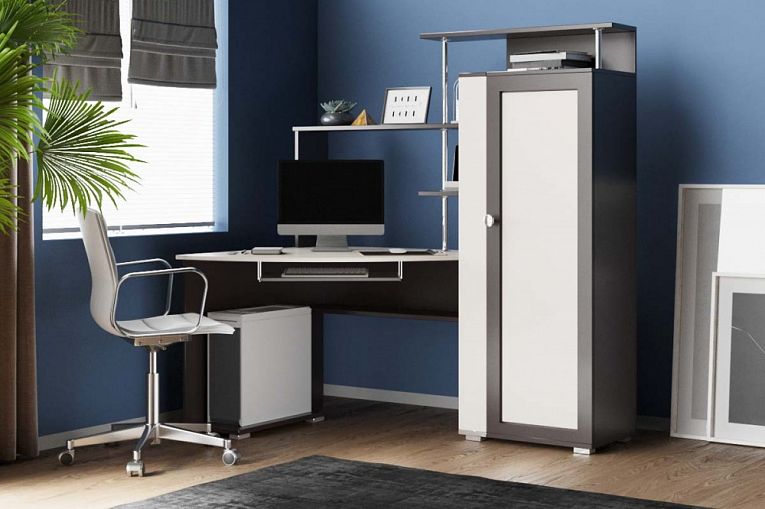 Необычный и функциональный компьютерный угловой стол Млайн 32 прекрасно впишется в современный интерьер. На широкую столешницу поместится монитор с большой диагональю, а на открытые полки можно поставить диски. Удобным решением в этой модели является шкаф, в котором можно хранить необходимые Вам мелочи. Вы можете выбрать любой цвет этого стола на нашем сайте. Купить такую модель можно недорого в нашем интернет-магазине.