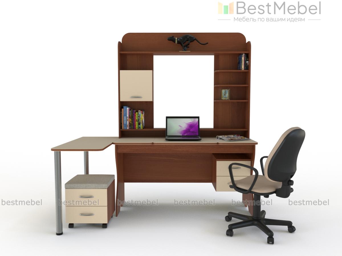 Компьютерный стол Наполи BMS отличается комбинированной конструкцией, которая экономит пространство и позволяет обустроить эргономичное рабочее место. Универсальная модель для письма и работы за компьютером оборудована столешницей с регулировкой угла наклона и дополнительным откидным элементом, надстройкой с множеством полок и тумбой для хранения канцелярских мелочей. Дополняет композицию мобильная тумба-пуф. Купить компьютерный стол Наполи BMS вы сможете в нашем интернет-магазине, подобрав оптимальные параметры.