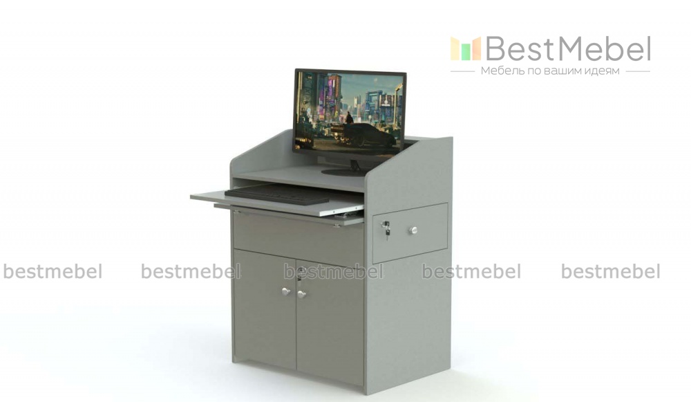 Компьютерный стол-трансформер Юджин 3 BMS оборудован всем необходимым для размещения мультимедийного оборудования: ограниченной бортиками столешницей, выдвижными панелями с фронтальной и торцевой сторон и двухдверным распашным отделением. Выполненная в темных серых тонах, модель представляет собой вместительную тумбу с закрывающимися на ключ секциями. Практичная конструкция позволяет использовать стол в интерьере дома, офиса или конференц-зала. Купить компьютерный стол-трансформер Юджин 3 BMS приглашаем в наш интернет-магазин с выбором цвета и фурнитуры.
