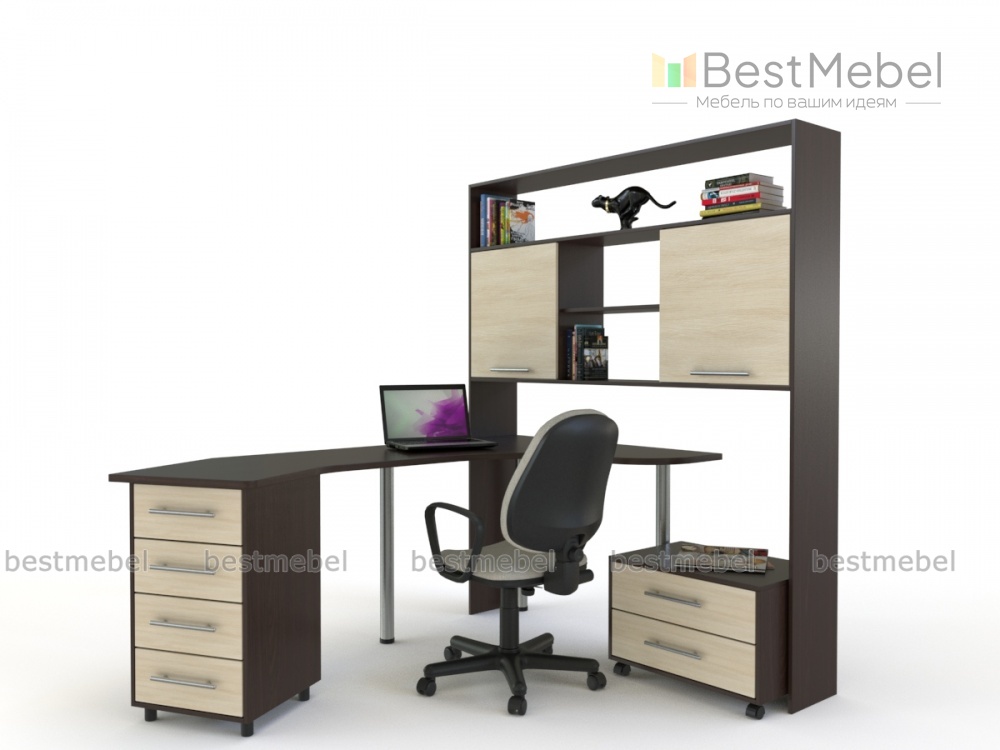 Компьютерный стол угловой Силл BMS объединяет рабочее место и продуманную систему хранения. Угловая эргономичная столешница на хромированных опорах дополнена приставной и мобильной тумбами для размещения оргтехники, хранения канцелярских мелочей и документов. Высокая надстройка оборудована распашными отделениями и полками для книг и предметов декора. Выполненные в контрастных древесных тонах, поверхности просты в уходе и сохранят эстетичный вид на протяжении всего срока службы. Купить компьютерный стол угловой Силл BMS по выгодной цене приглашаем к нам в интернет-магазин.