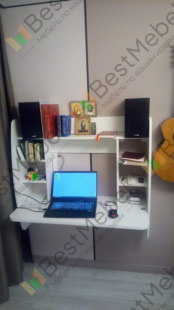 Приобрёл навесной стол длиной 1000 мм.Собрал и подвесил сам без проблем - нормальная инструкция, сборка несложная, повозился только с монтажом.В центральной нише расположил ноут, и для мыши места осталось мало. Так что лучше при такой компоновке брать подлиннее стол. Ячейки по бокам невысокие, из-за чего они неудобные для использования. Если было бы выполнено только одно разделение, получилось бы лучше.