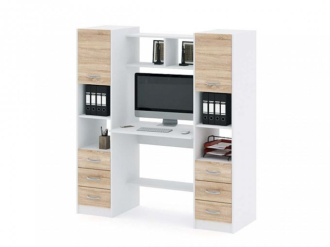 Стол компьютерный Август 1.4 BMS отличается простотой и функциональностью конструкции. Современная модель станет незаменимой в домашнем интерьере и поможет оборудовать комфортное место для работы и учебы. Конструкция представляет собой сочетание столешницы, нижней и антресольной открытых полок и двух боковых стеллажей, оборудованных распашными отделениями и выдвижными ящиками. Разные типы отделений помогут максимально удобно разместить все необходимое. Купить стол компьютерный Август 1.4 BMS, подобрав оптимальную расцветку, приглашаем в наш интернет-магазин.
