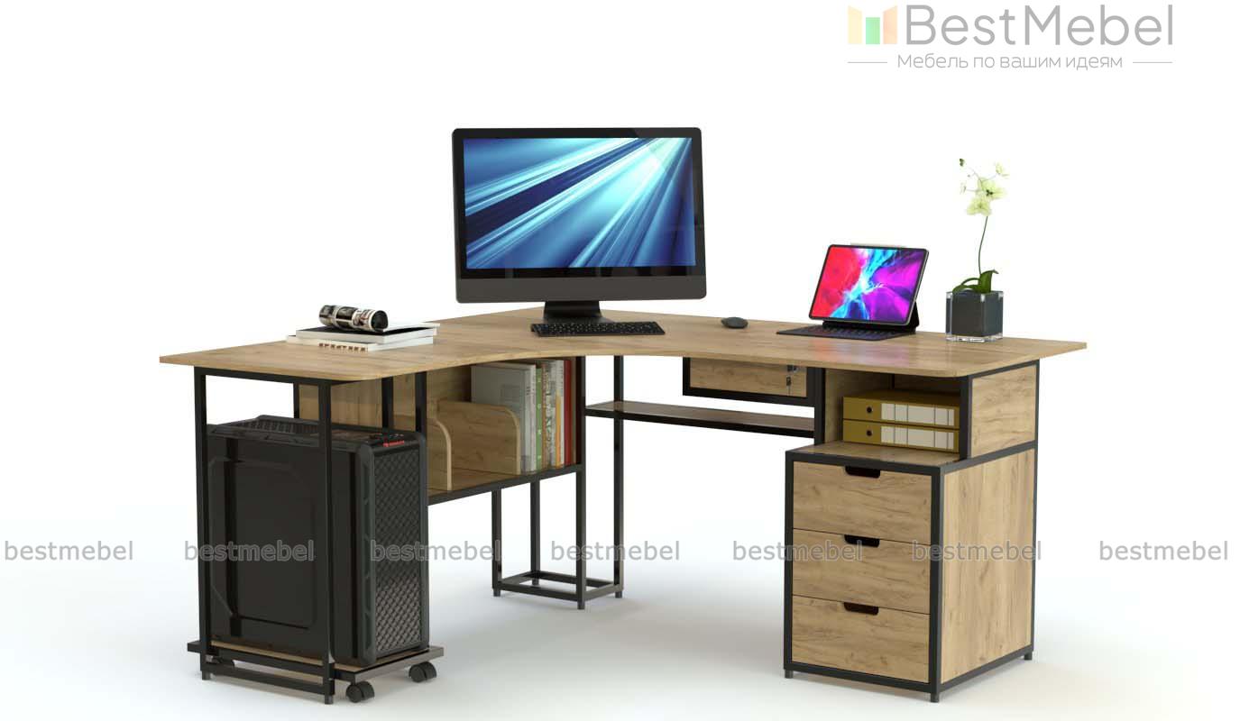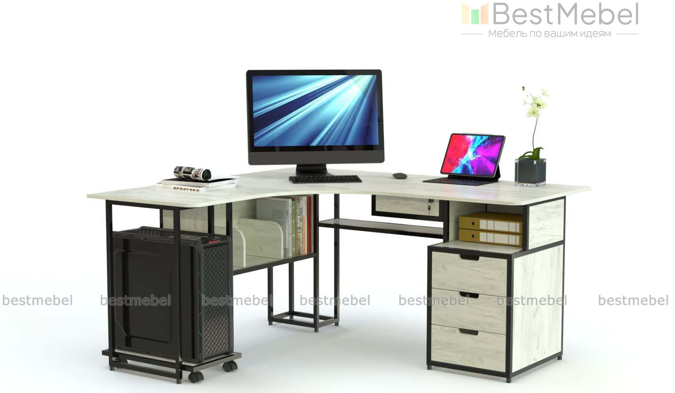 Стол компьютерный Кассандра 2 BMS с корпусом нейтрально-серого цвета и контрастным металлическим каркасом органично впишется в домашние и офисные интерьеры. Модель в стиле индастриал отличается прочностью, легкостью и долговечностью, а угловая конструкция позволяет рационально организовать пространство. Под эргономично вырезанной столешницей располагаются тумба с выдвижными ящиками, ниша и мобильная подставка под системный блок, открытые полки для книг и документов и ящик, закрывающийся на ключ. Купить стол компьютерный Кассандра 2 BMS вы сможете в нашем интернет-магазине.