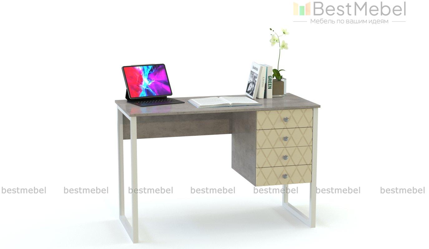 Стол компьютерный Хэтти 15 BMS гармонично дополнит интерьеры в стиле минимализм, лофт или индастриал благодаря широким металлическим опорам и оригинальному сочетанию светлых крафтовых и контрастных графитовых оттенков. Фрезерованные фасады с геометрично правильной фактурой придают модели эстетическую завершенность, а четыре выдвижных ящика помогут оптимизировать свободное пространство. Купить стол компьютерный Хэтти 15 BMS по низкой цене приглашаем на сайт нашего интернет-магазина.
