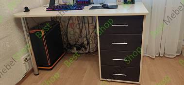 Стол компьютерный Марио 5 BMS Стол отличного качества, хороший и удобный. Размеры и опции выбрал под себя 1400x800x800, кромка стола 2мм, скрытый крепёж видимых элементов, направляющие шариковые с доводчиком. Хотелось выбрать стол именно по своим хотелкам, просмотрел сотни столов на сайтах крупных и мелких сетей магазинов, но все чего-то не подходило, либо размер, либо цвет, либо ящики или просто не хватает полной информации на сайтах. Это очень здорово, когда стол может быть выбран прямо на сайте по любым размерам, цветам и опциям, все как пожелаете. Изготовлен был буквально за 2-3 дня, просто был приятно удивлен скорости. Был качественно упакован и пришел без единой царапины и сколов. Сборку заказывал тут же на сайте. Все было сделано на совесть, быстро и качественно. Стол искал именно с вырезом, чтобы локти не свисали, очень эргономичная конструкция. Очень вместительные ящики с доводчиками, плавно закрываются. Много места под ноги, компьютерное кресло спокойно вмещается в нишу. Покупал в феврале, прошло 5 месяцев, полет нормальный. Рекомендую продавца и данный стол.