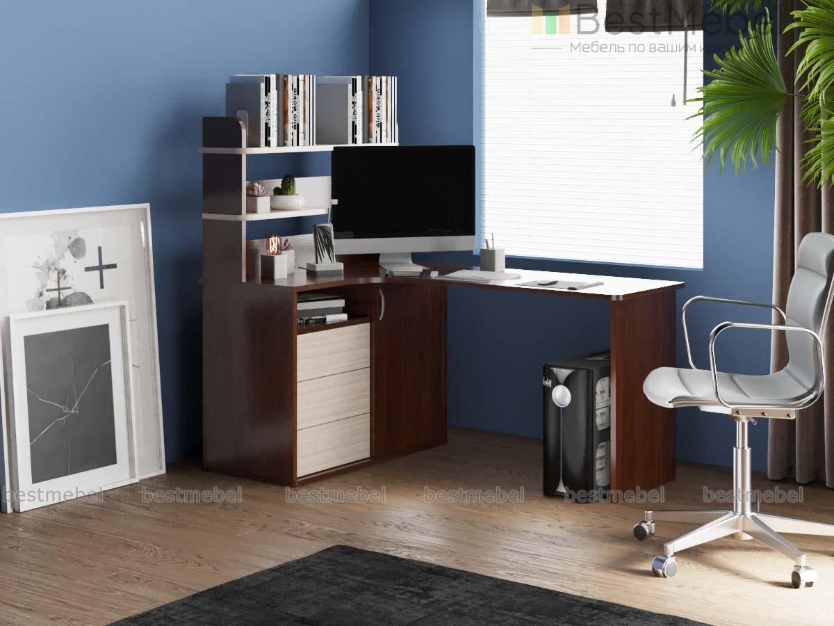 Большая модель компьютерного углового стола включает в себя широкую рабочую поверхность, боковой шкаф для книг, документов и т.д. Стол отлично подойдет для учащихся, офисных работников и активных компьютерных пользователей. Модель стильная и современная. Оригинальный и продуманный дизайн наверняка Вас заинтересует. При желании базовые размеры модели можно увеличить или уменьшить и купить подходящий для Вас вариант.